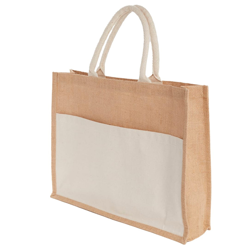 This durable tote bag, made from high-quality recycled cotton and jute, offers ample space and convenient storage for everyday essentials.