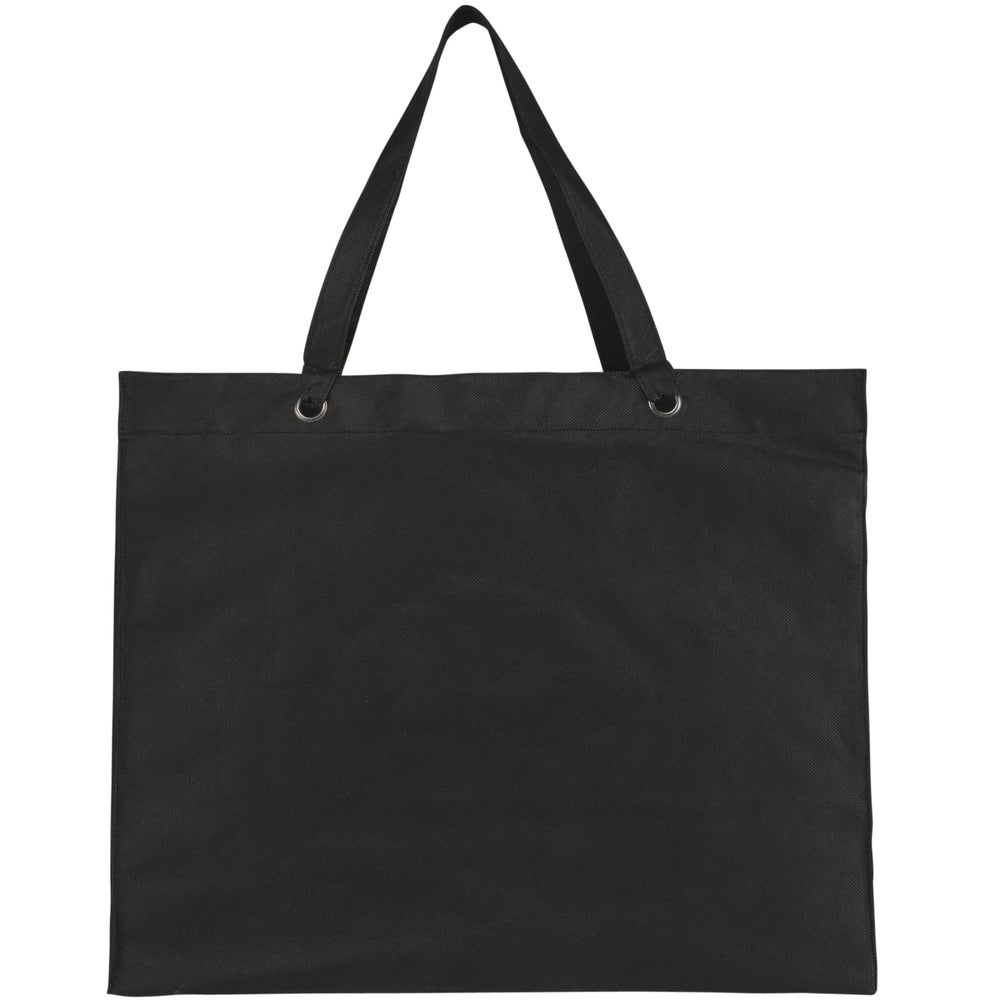 The Oak Non-Woven Shopper Tote has an open main compartment with double 23 inch handles reinforced with metal grommets. Completely reusable it's a great alternative to plastic bags.