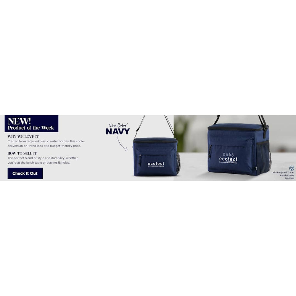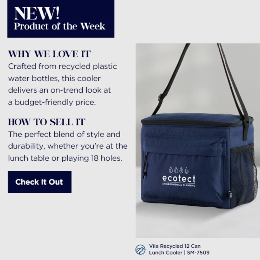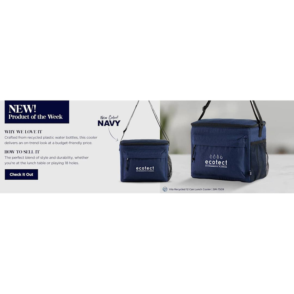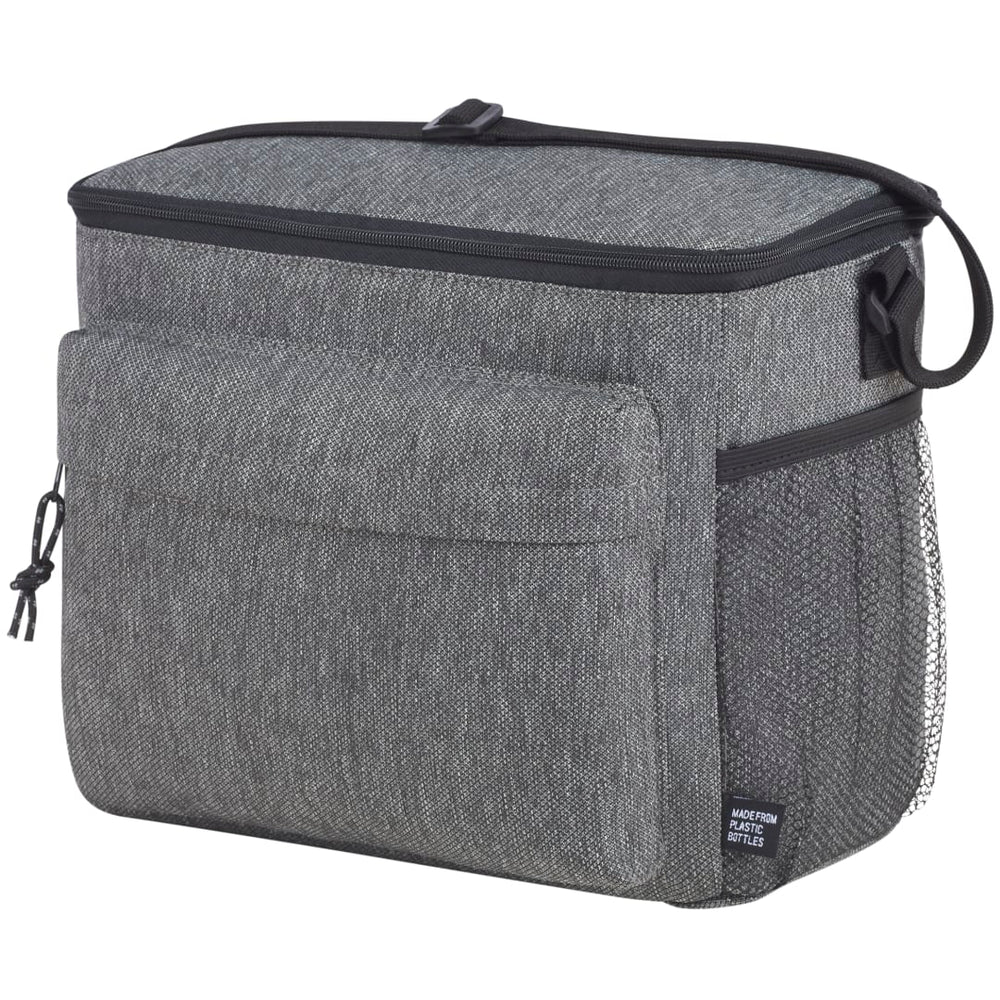 The Dark Recycled 12 Can Lunch Cooler isn't just stylish – it's sustainable, too! With a body made from 100% recycled material, this eco-friendly cooler features a padded adjustable strap for easy carrying and a grey PEVA lining.