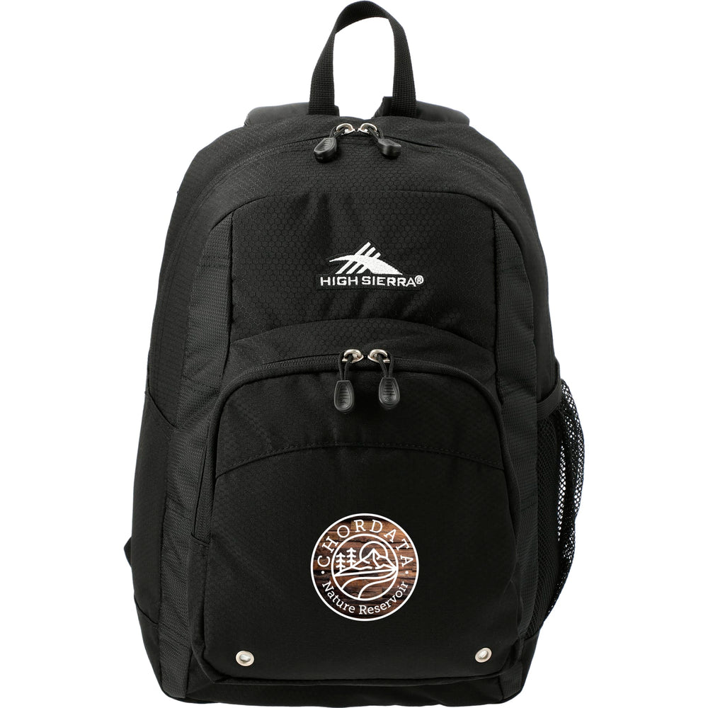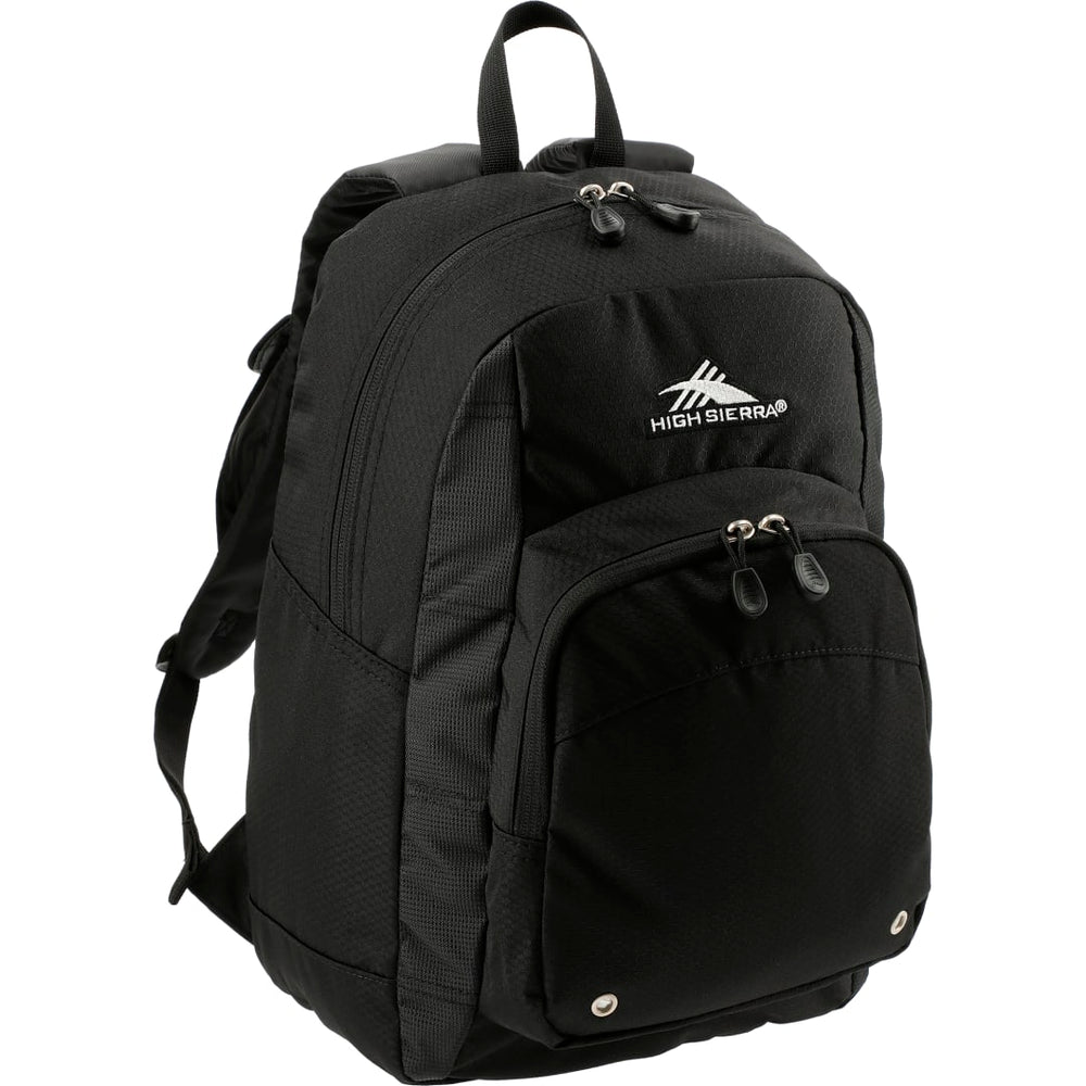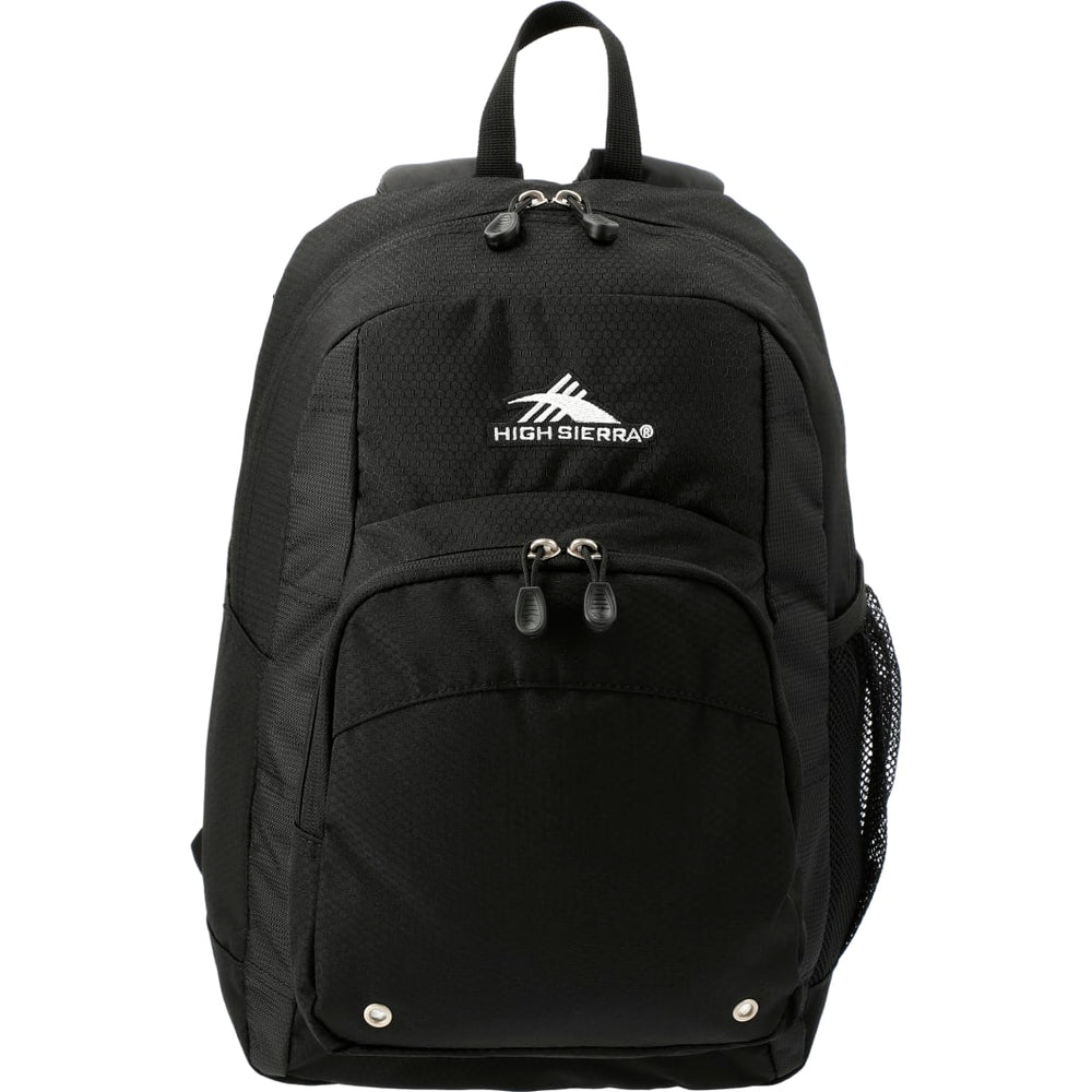 Constructed from a durable blend of nylon and Duralite, the High Sierra Impact Backpack features a spacious front-loading main compartment. It also includes a large gusseted front pocket for additional accessories, a cell phone pocket, and a mesh water bottle pocket, plus a handy organizer with pen pockets and a key fob. The backpack has contoured, padded shoulder straps and a cushioned back panel for comfortable wear, along with a grab-handle for carrying.
