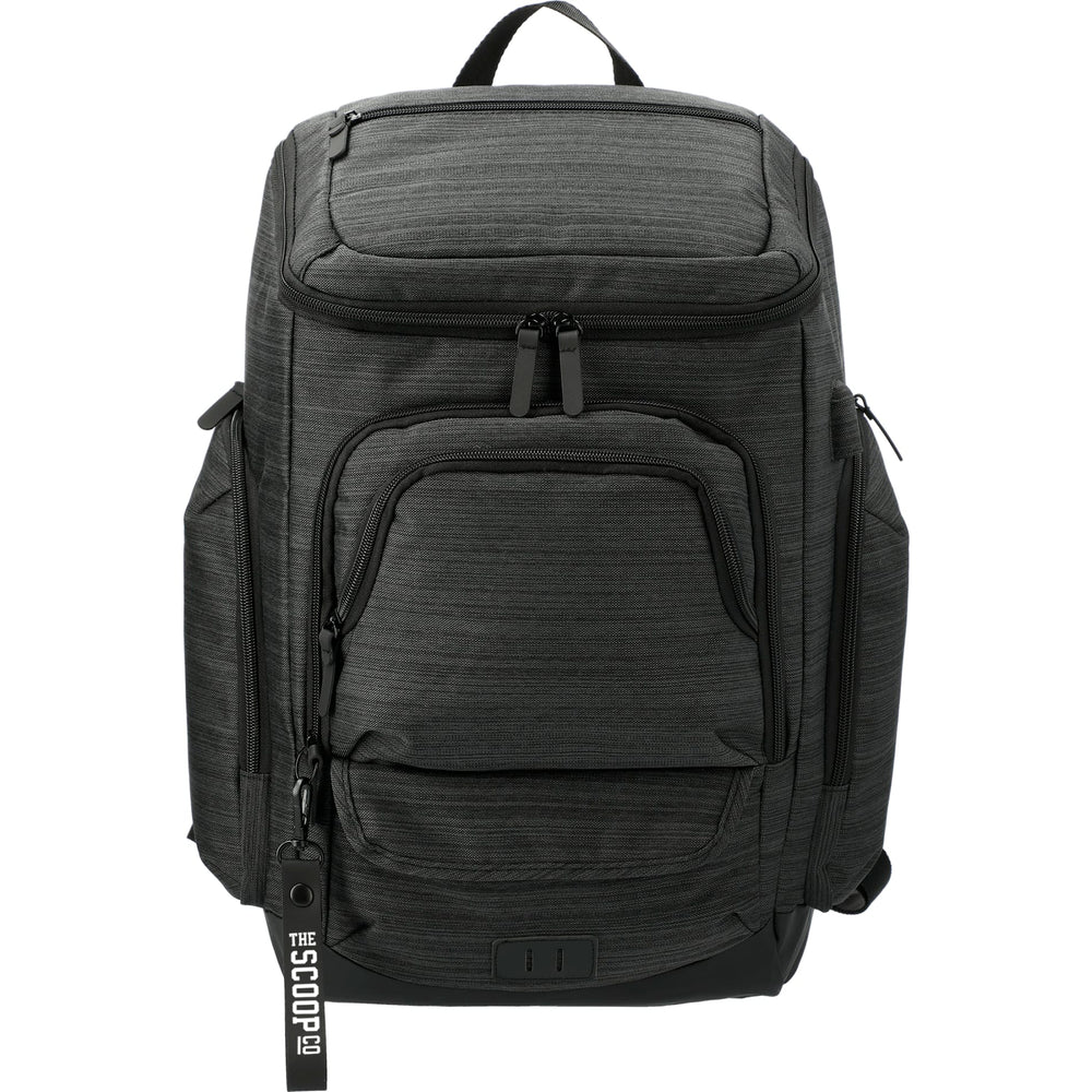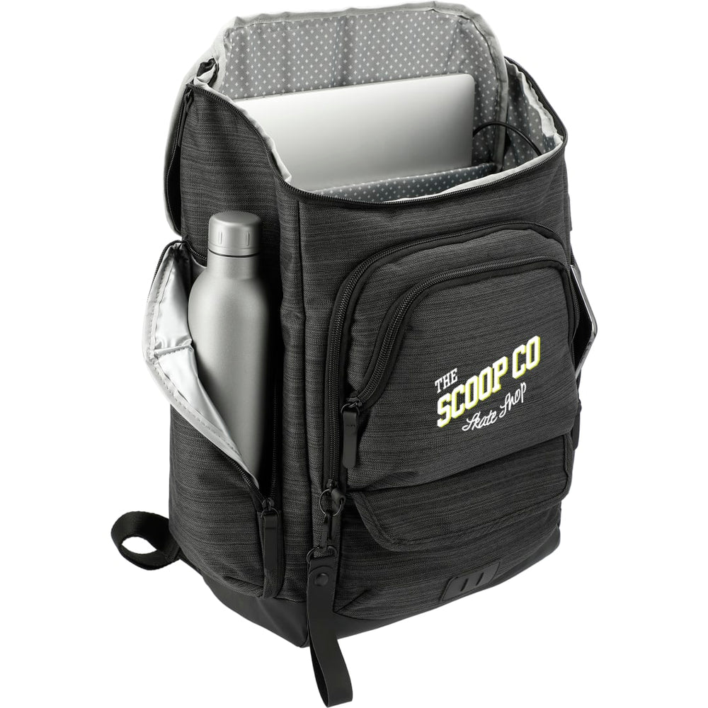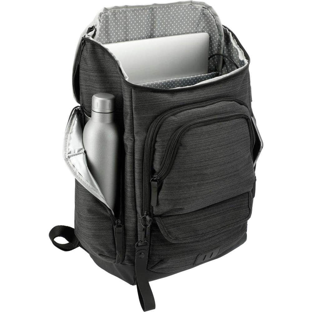 NBN stands for "No Brand Needed." The NBN Whitby 15” Computer w/ USB Port has everything you need in a daily backpack. This backpack features a side USB port with cable, a padded 15” laptop sleeve in the roomy, zippered main compartment and custom printed lining. Added features like a PEVA lined side water bottle pocket, zippered front pocket with RFID protection and premium vinyl lash tab take this bag to the next level. To top it off, this backpack also includes multiple zippered pockets, trolley sleeve, and padded mesh backing and straps. Looking for a new way to showcase your brand? This bag includes an oversized zipper pull that's available to decoration.