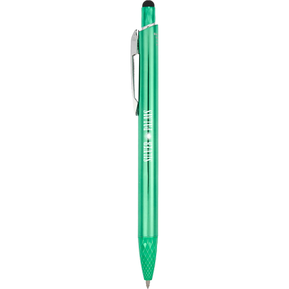 The Brite Recycled Aluminum Gel Stylus Pen brings sustainability and functionality together with a UV-coated barrel made from 94% recycled aluminum and a unique diamond-textured tip for a comfortable grip. This pen features a precise 0.5mm tip that provides 150 meters of smooth black gel ink, making it perfect for extended writing. By choosing this pen, you’re supporting environmental nonprofits through our partnership with 1% For The Planet.