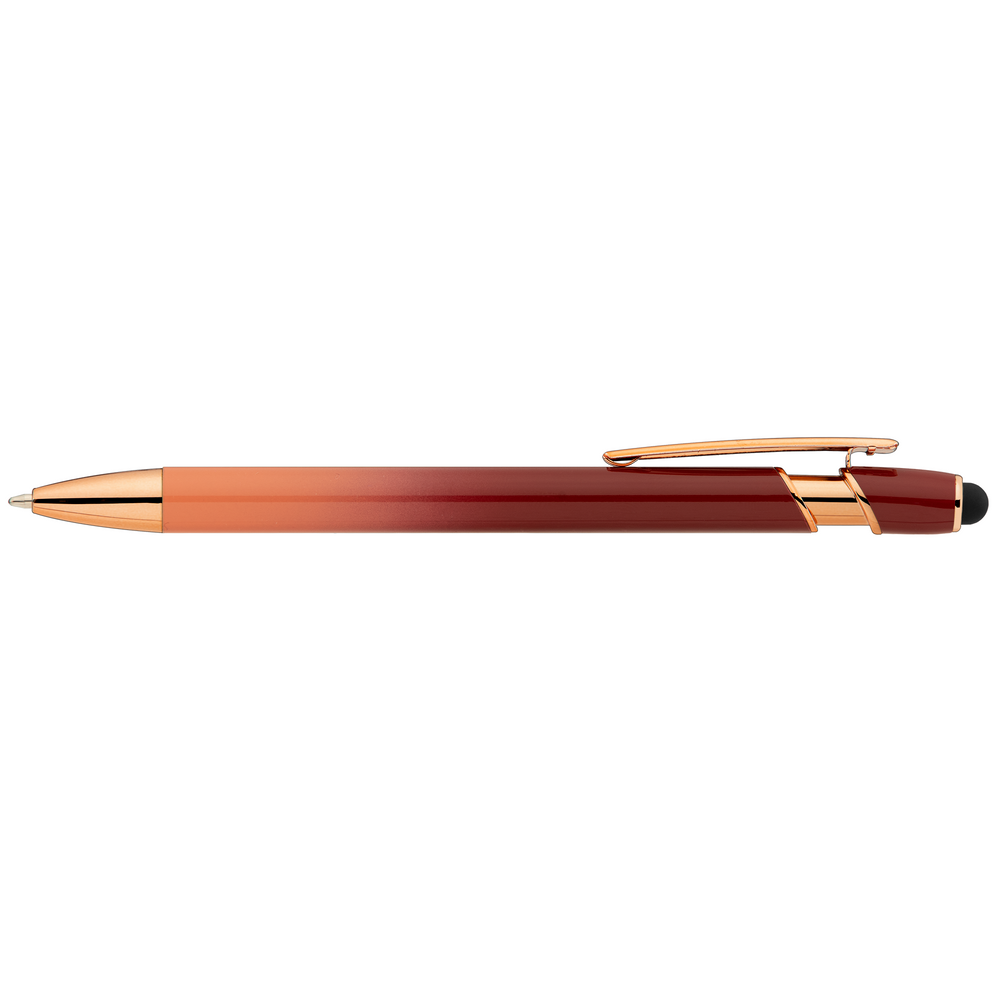 This memorable promotional pen will be a favorite of your customers! The Ellipse Ombre Rose Gold Stylus Pen is a stylish, premium pen with a modern rose gold trim, available in your choice of black medium ballpoint ink. Available in enchanting ombre barrel colors, all with a perfect stylus for touchscreens.