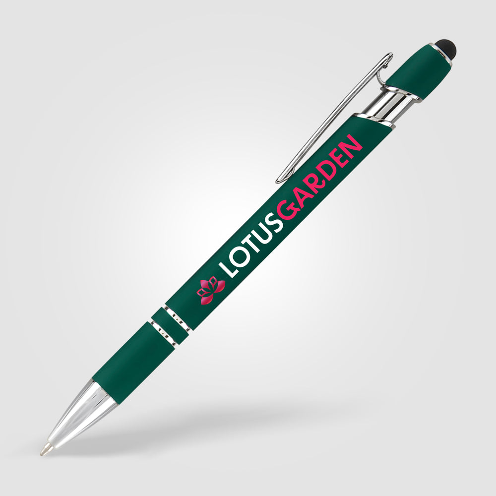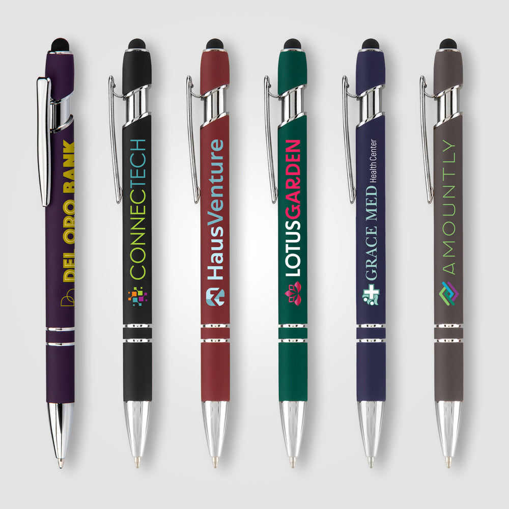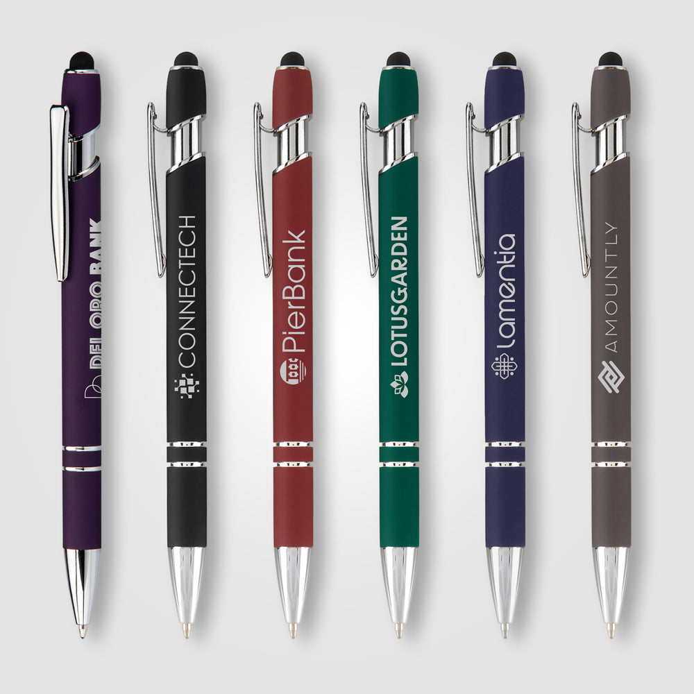 Introducing the Ellipse Softy Gel Pen w/Stylus – a stylish and practical writing tool that effortlessly combines elegance with technology. The pen showcases an Aluminum Rubber Barrel with a Chrome Metal clip, providing a polished appearance. The Chrome-painted plastic Nosecone adds a hint of sophistication, paired with the convenient Black Plunger and Stylus for contemporary functionality.