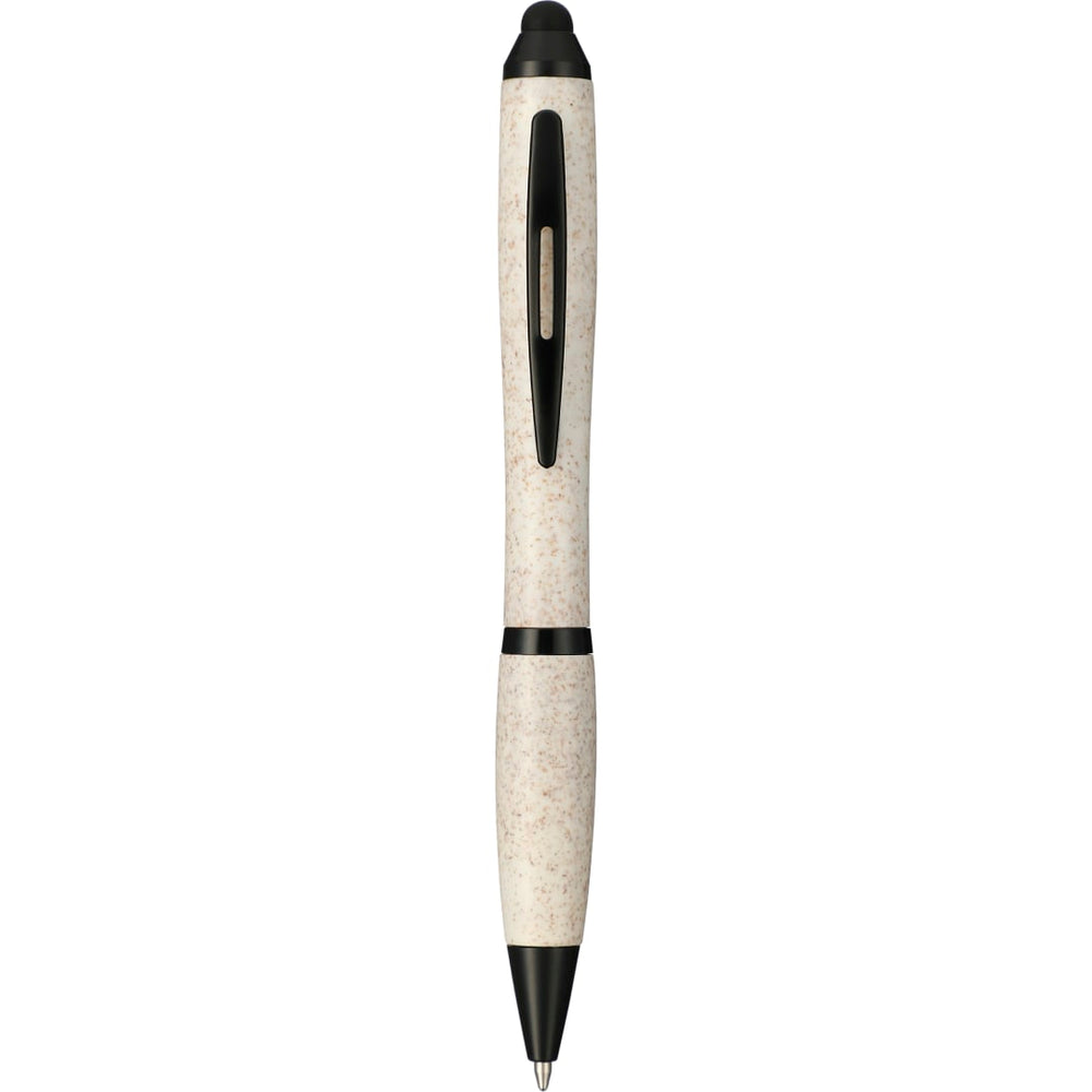 The Nash Wheat Straw Ballpoint Stylus Pen features a 40% wheat straw barrel with black accents. Soft, rubberized touch stylus. Twist action mechanism. Black ink cartridge with 1.0mm pen tip. 800m writing length. Through a partnership with 1% For The Planet one percent of sales of this and all EcoSmart products will be donated to nonprofits dedicated to protecting the planet.