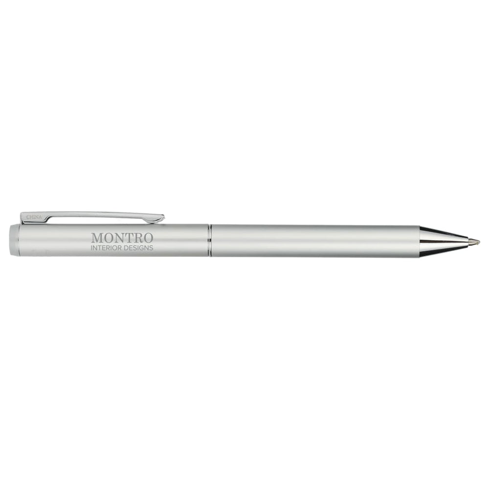 The Recycled Aluminum Ultra Gel Ballpoint features a 100% recycled aluminum barrel and shiny chrome accents. Includes 0.7mm tip and 300 meters of smooth black gel ink.