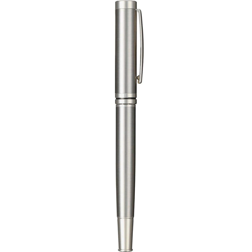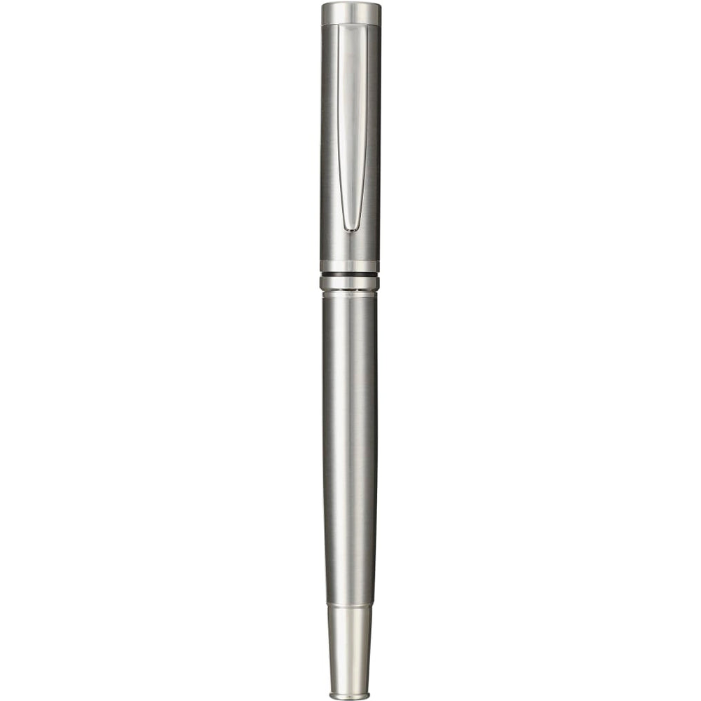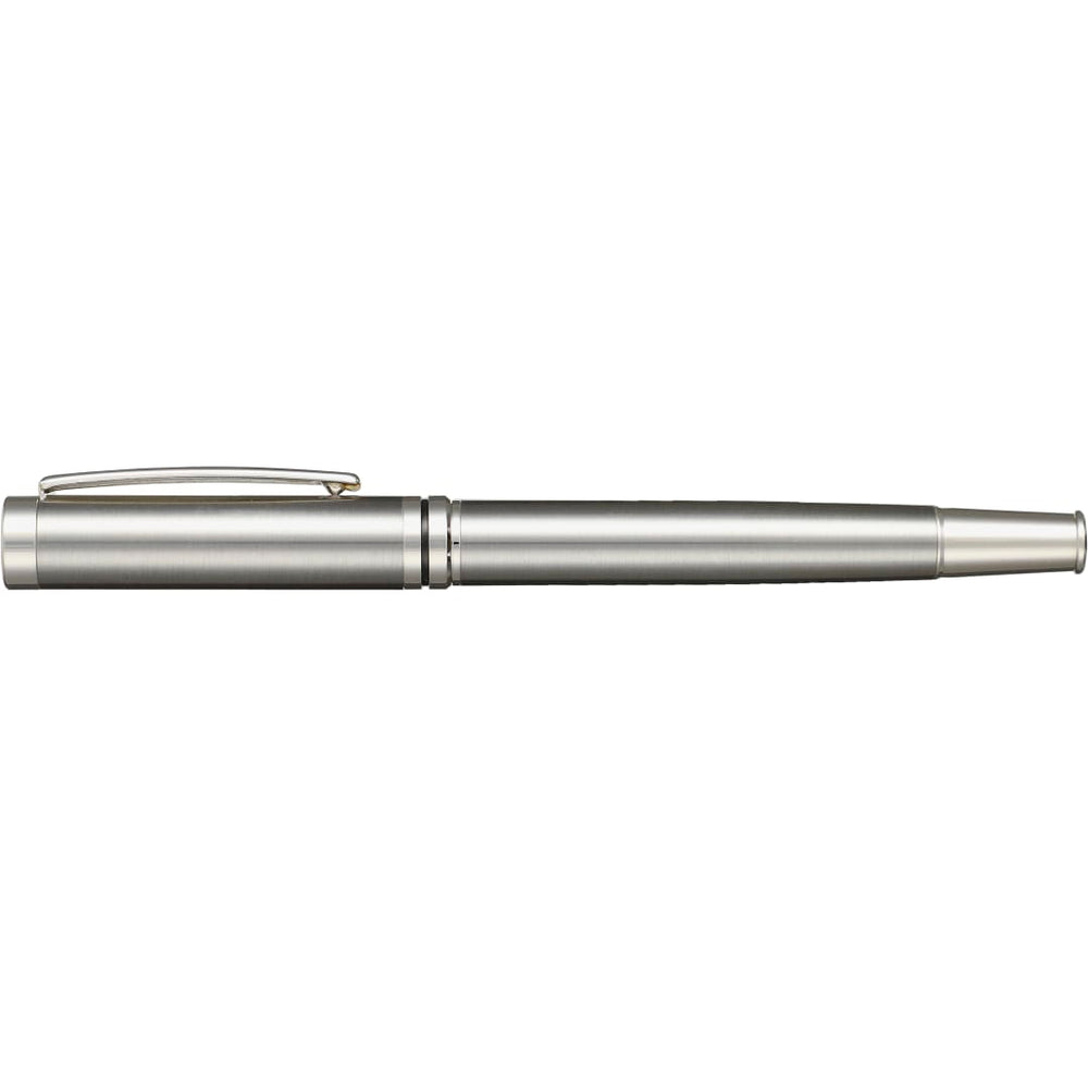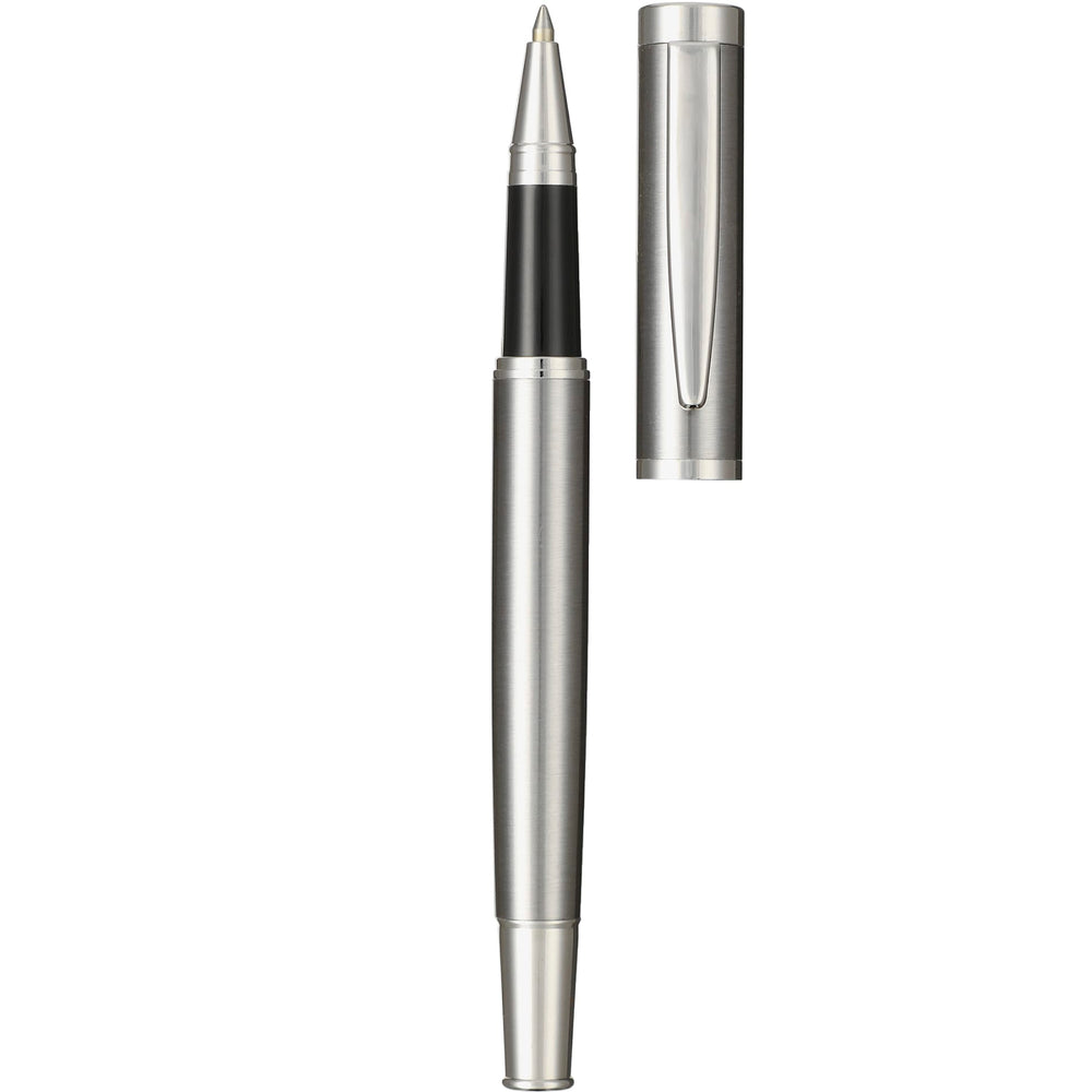 The Recycled Stainless Steel Rollerball Pen features a recycled stainless steel barrel with shiny chrome accents and 0.7mm tip. Smooth black ink with 400m of writing length and cap off design. Through a partnership with 1% For The Planet, one percent of sales of all EcoSmart® products are donated to environmental nonprofits.