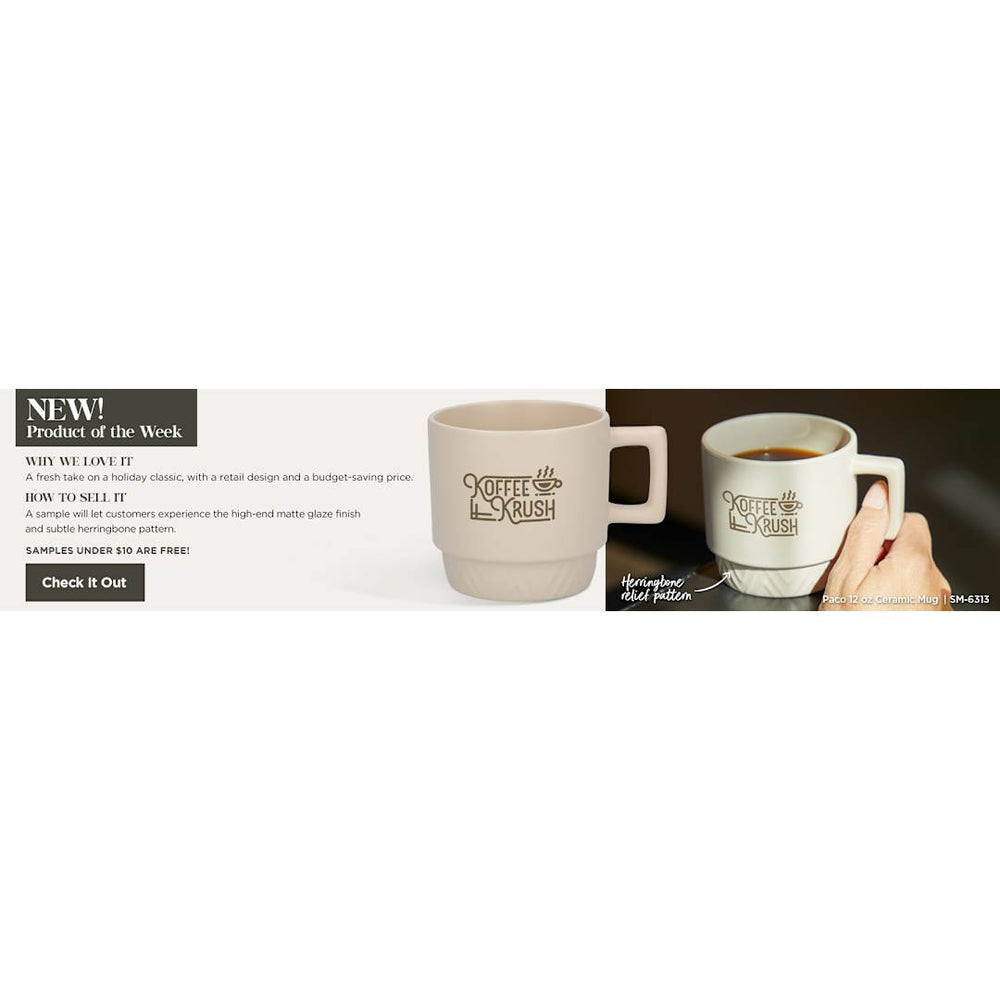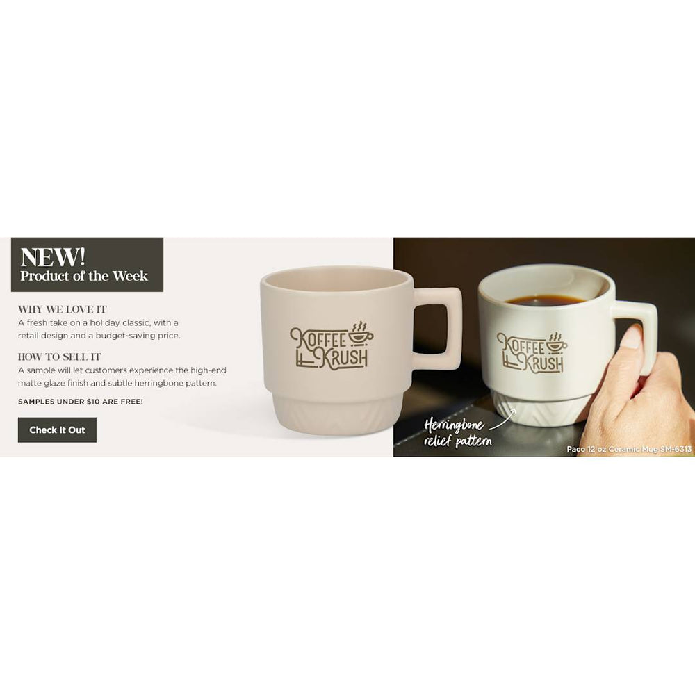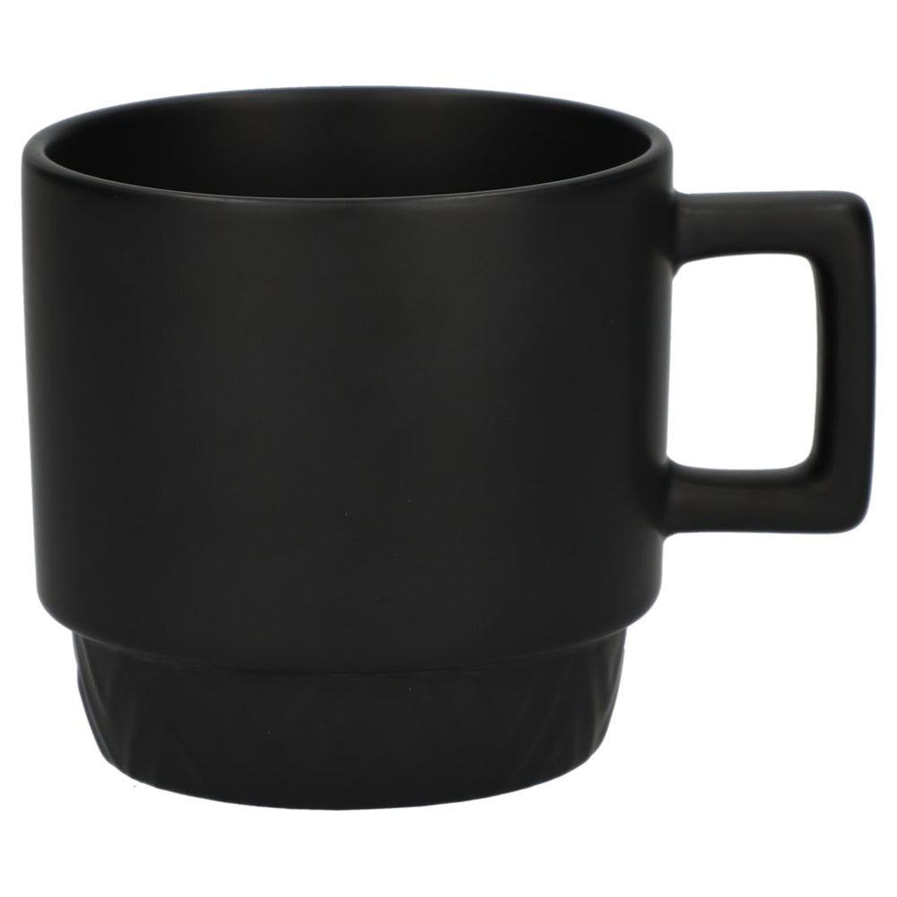 Sophisticated and stackable, our Paco 12oz Ceramic Mug features a beautiful matte glaze throughout the vessel for an elevated look and cozy feel. Raised herringbone design along the base gives you subtle pattern. Wide surface area at the top of the mug for you to enjoy your hot beverage. Hand Wash Only. 12oz.
