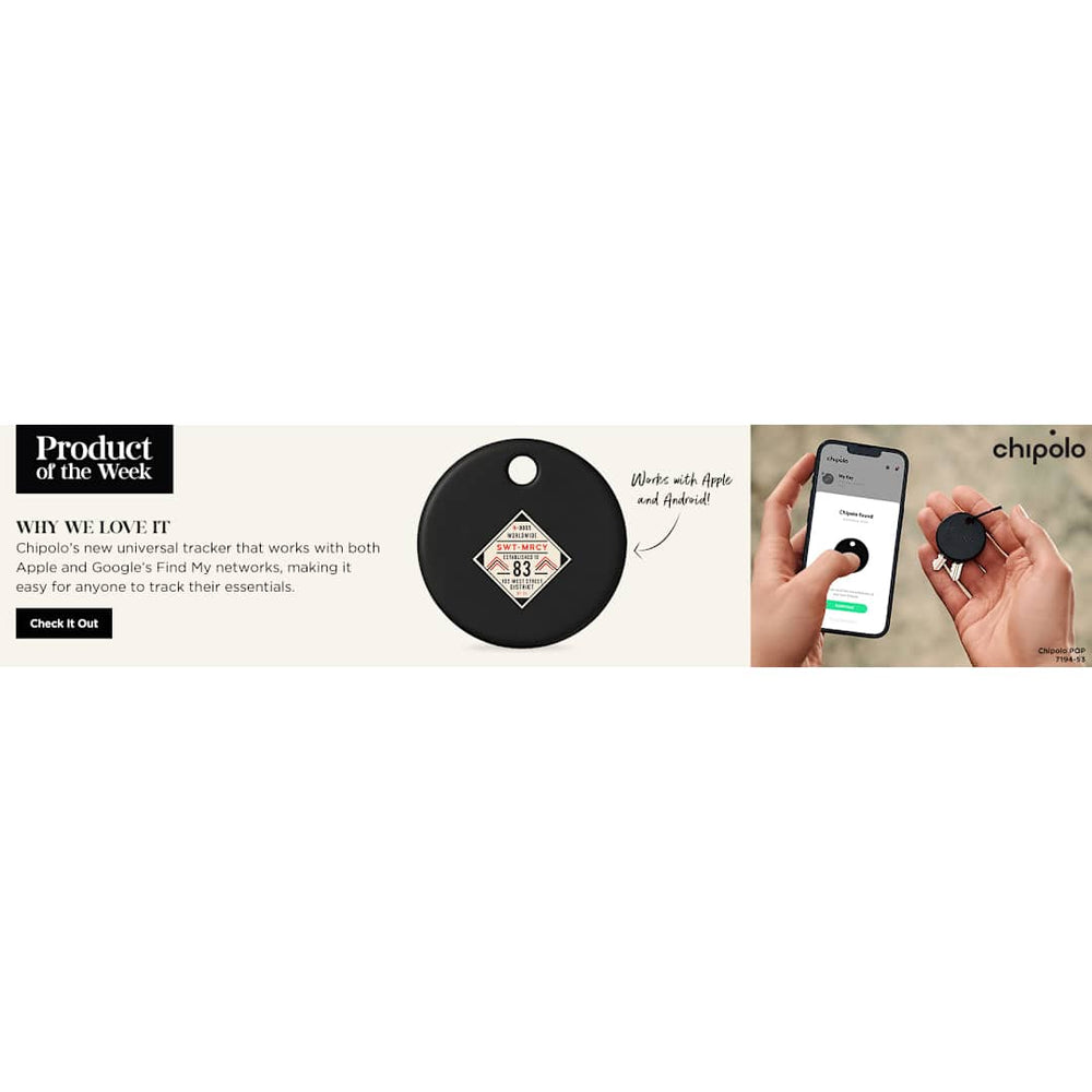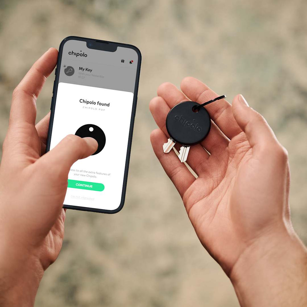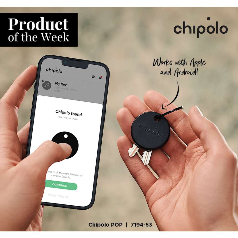 Meet our vibrant tracker designed to help you live life to the fullest. Keep track of your keys, bag, luggage, and more. POP works with Apple's Find My or Google's Find My Device network. Download the free Chipolo companion app and get extra features, like Call Your Phone, and more. Includes replaceable CR2032 button cell battery. The estimated battery life is up to 1 year. Water & Dust Resistance: IP55. Optimal Bluetooth Range: 300 feet. The Chipolo Pop is made in Slovenia using approximately 50% recycled materials.