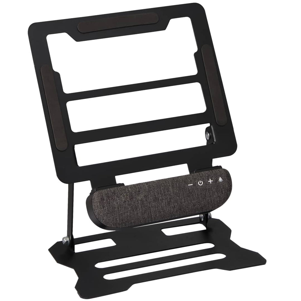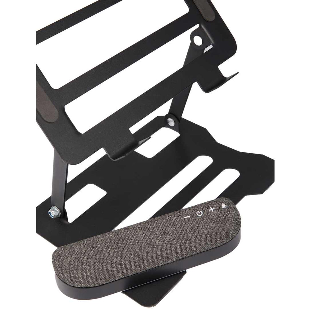 The Elevate Laptop Stand and Bluetooth Speaker is a versatile, all-in-one accessory designed to enhance your workspace. With an adjustable stand that raises up to 11.8”, it’s perfect for sitting or standing at your desk, promoting a comfortable, ergonomic setup. The stand supports laptops up to 16” and 7 pounds, and when not in use, it folds flat for easy storage. At the front of the stand is a removable Bluetooth speaker that connects seamlessly to your computer, offering a six-hour playback time at maximum volume. It also features a built-in microphone for hands-free calls, making it a practical addition to your workspace. The speaker recharges fully in three hours with the included Type-C charging cable.