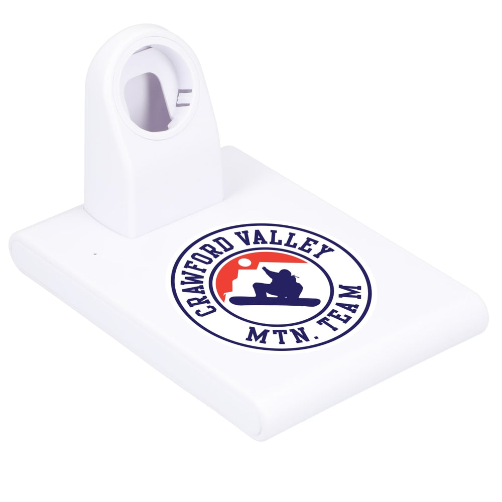 The Mate Wireless Charging Pad and iWatch Holder features with 5W wireless charging spot for smartphones and a specific holder to hold your magnetic iWatch charger (not included) while the watch charges wirelessly. Includes 39-inch USB-A to Type-C charging cable. Works with most plastic phone/airpods cases on.