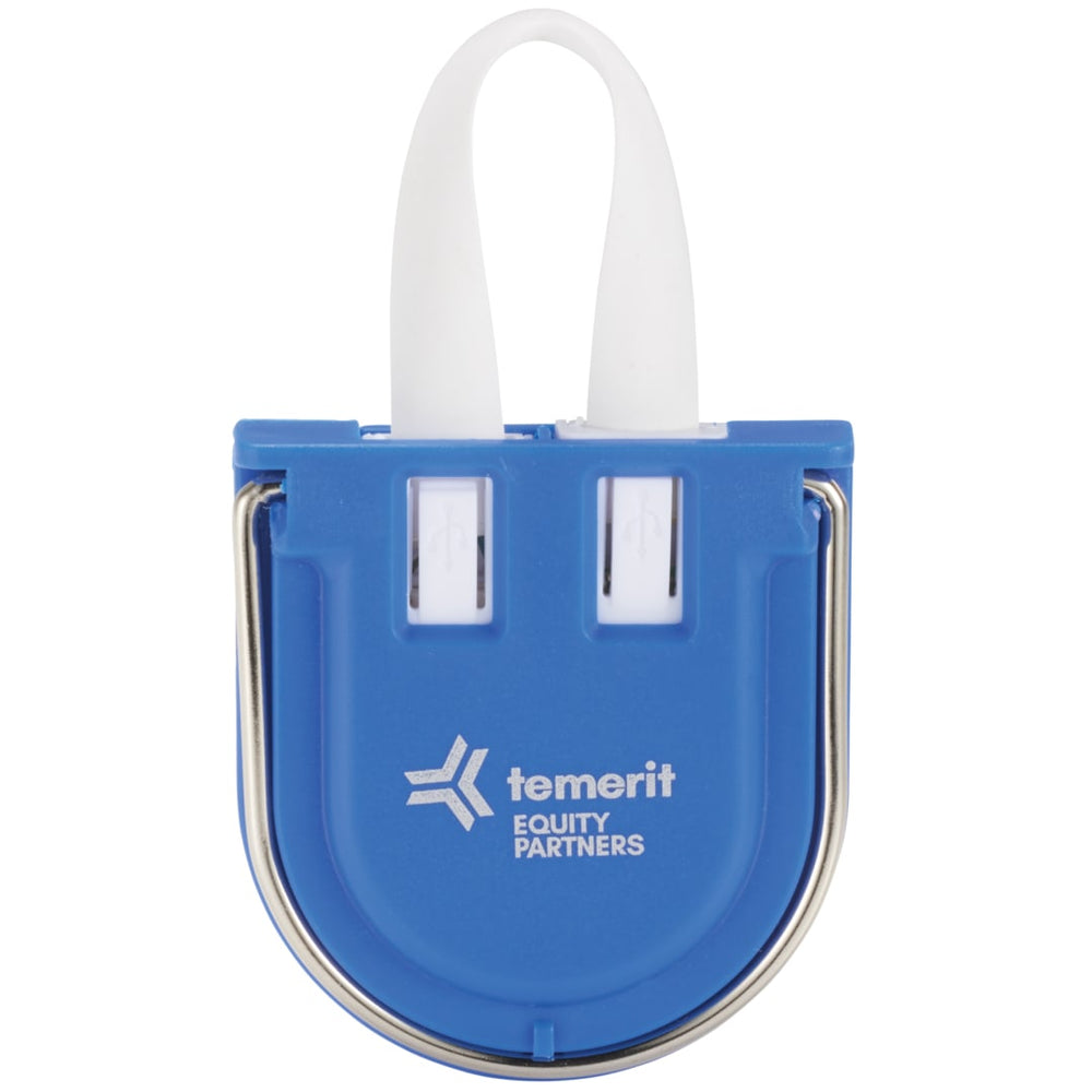 Patch Phone Stand with 2-in-1 Cable can be stick on the back side of a phone and pull the ring out to be used as a phone stand or holder. Pull out the 2-in-1 cable to charge both Apple® iOS and Android devices with 2A current. Not compatible with iPad Pro.