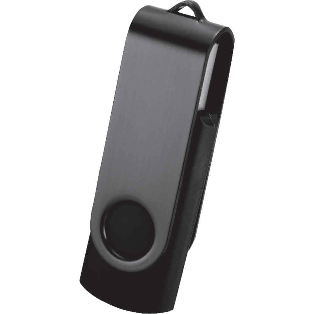 Flash drive folds into a protective aluminum cover. RoHS compliant. Plug and play technology on Windows XP or above and Mac OSX or higher.