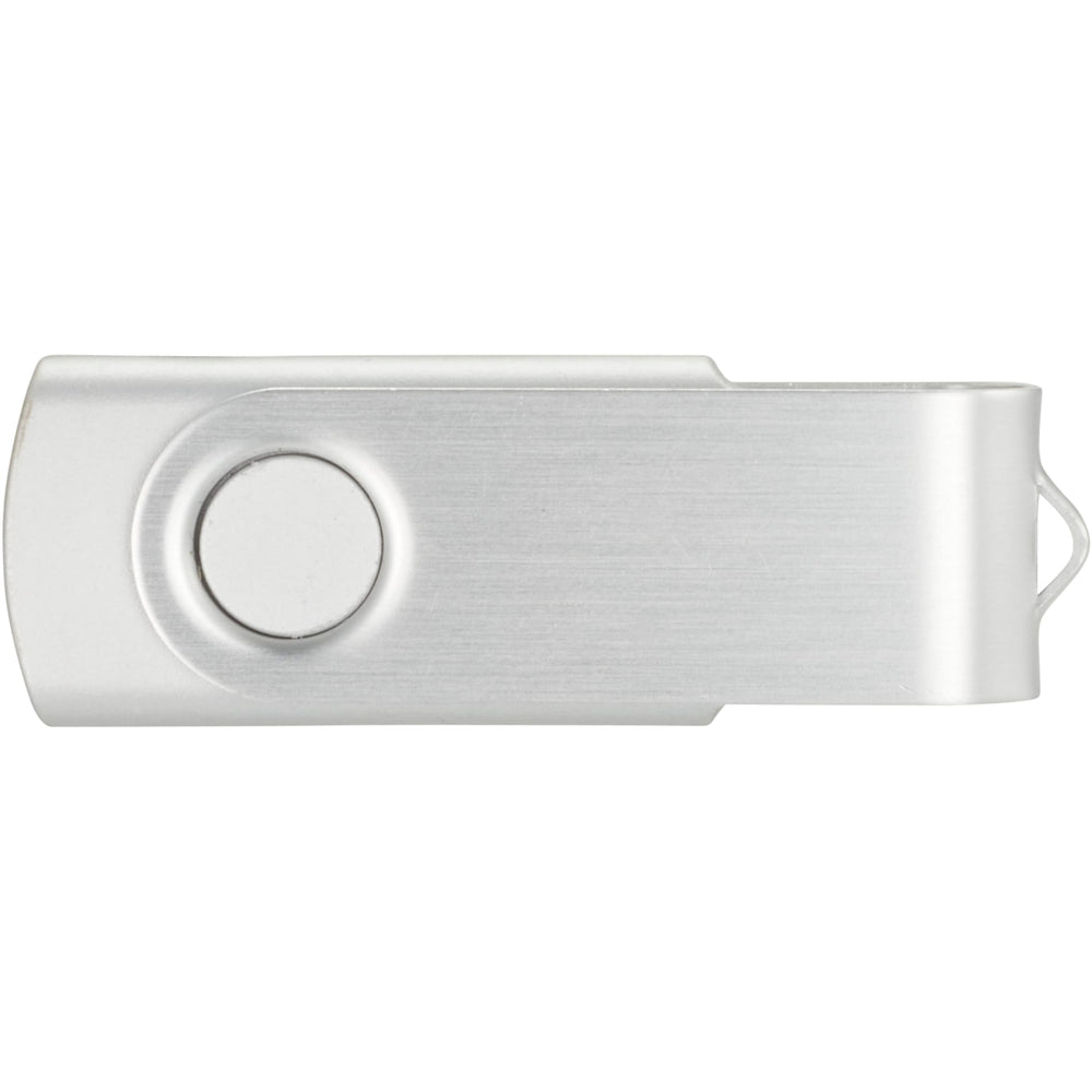 Flash drive folds into a protective aluminum cover. RoHS compliant. Plug and play technology on Windows XP or above and Mac OSX or higher.