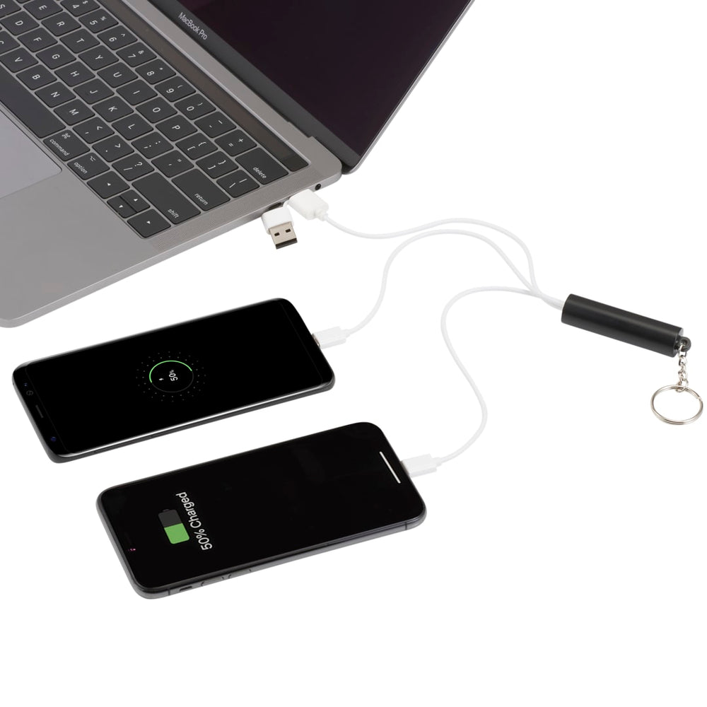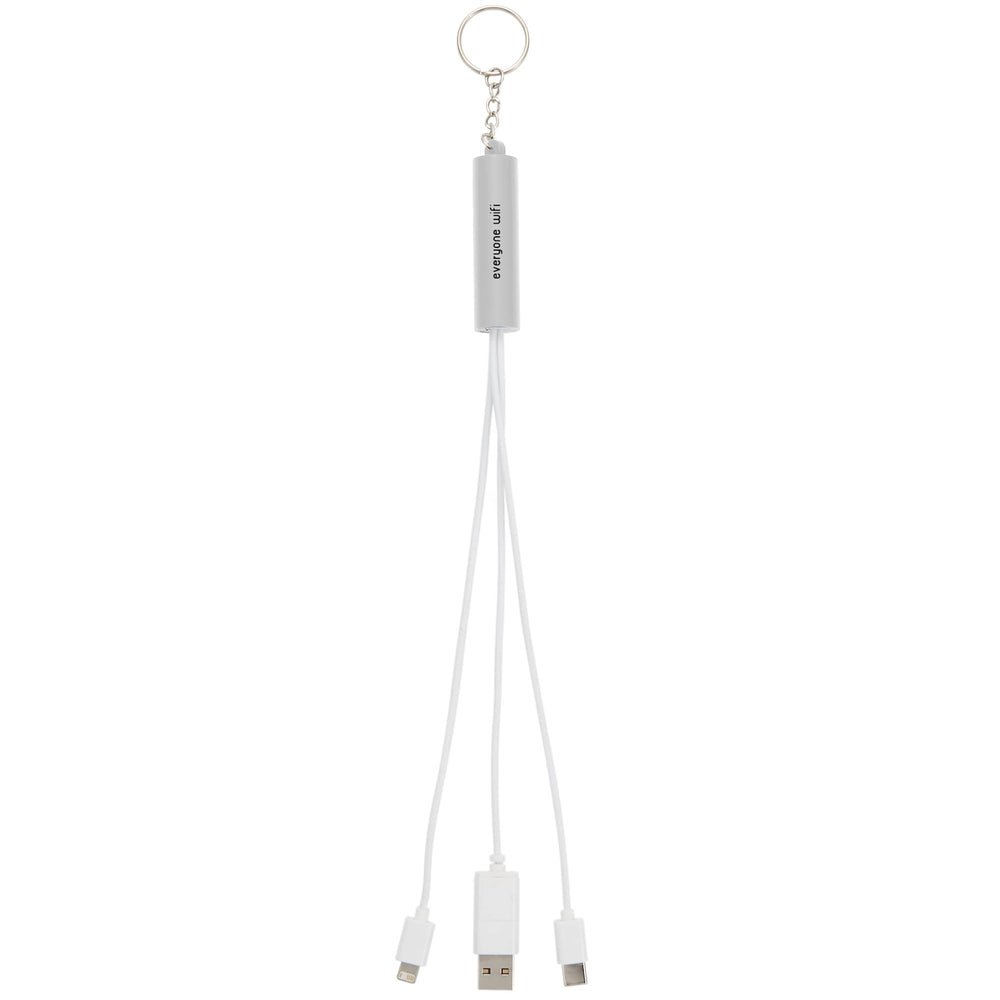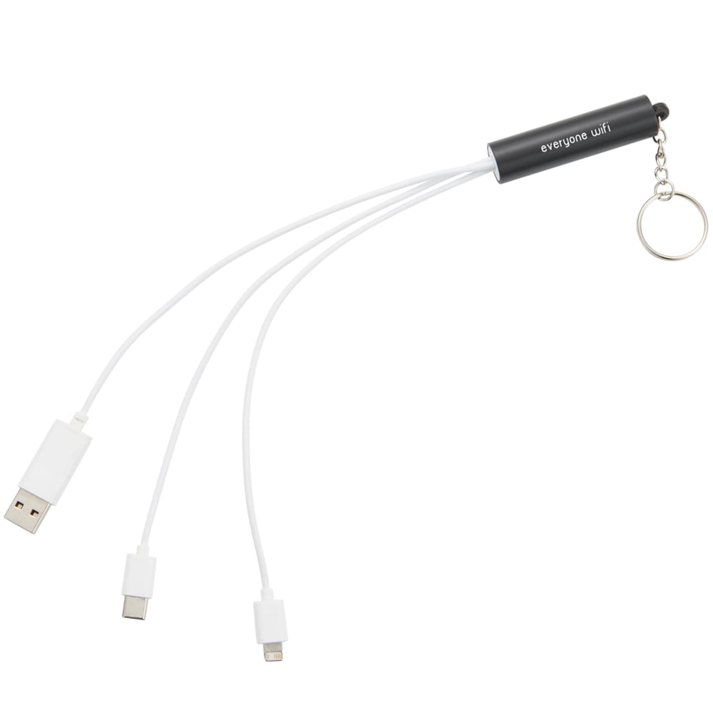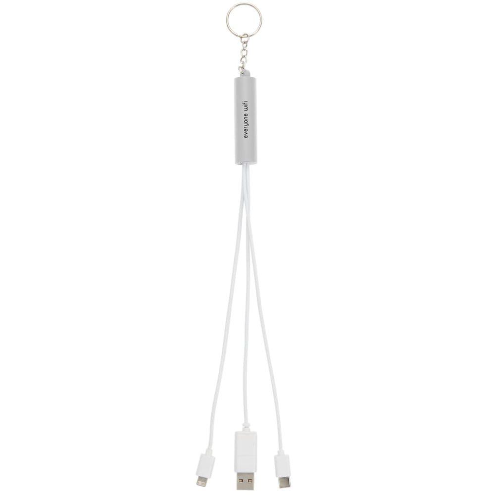 The Route Light Up 5-in-1 Charging Cable is a multi-use cable. It features a USB-A Input adapter with Type-C input tip, USB/Type C output tip, and a 2-in-1 dual compatible output tip for both iOS and Android devices with 2A current. Cable length (not including the head): 8.5 inch. This 5-in-1 cable also comes with a key chain for convenient carrying. This item must be lasered to reveal the light up function. Not compatible with iPad Pro. It is recommended to use an AC adapter, power bank or car charger to charge devices instead of using outputs from laptop or computer as power source.