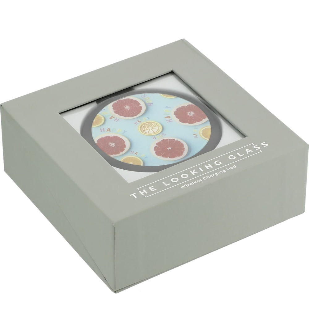 The Looking Glass Wireless Charging Pad lets you charge your smartphone without the cables. The tempered glass on the surface offers a vivid, customized look. It supports 5W wireless charging for most newer devices. To charge a phone without wireless technology, an external Qi-standard wireless charging receiver or receiver case is required. Works with most plastic phone cases on. Includes a 39-inch USB-A to Type-C charging cable. Packaged in a premium gift box.