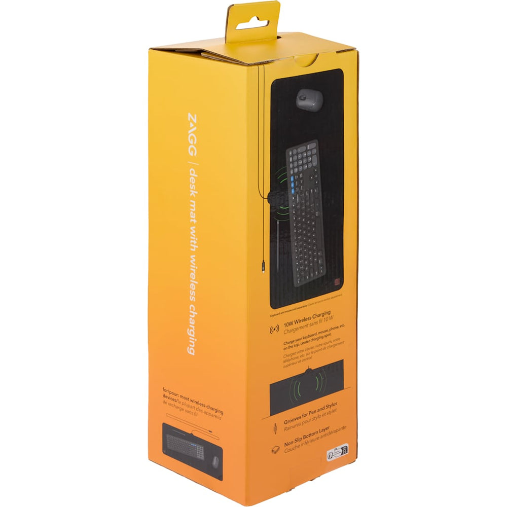 The ZAGG Desk Mat with Wireless Charging provides a smooth, safe and central location for your laptop, keyboard, phone and other devices. The mat has a 10W wireless charging spot where you can drop your stylus, mouse—even your phone—for a quick wireless charge. The integrated USB-C cable plugs into a power source. Grooves in the mat hold your pen or stylus to prevent them rolling around. The mat lies flat on your desk and won’t curl. Organize your workspace like a pro.