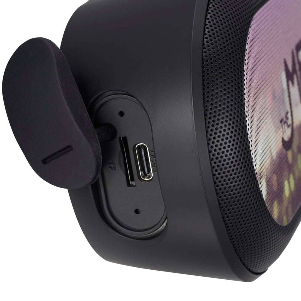 The Zedd Outdoor Waterproof Bluetooth Speaker with RGB Lights will rock along with you inside or out! The Zedd has an IPX6 Waterproof rating, meaning it can withstand rainstorms or splashes of water without damaging the speaker. The 5-Watt Bluetooth® speaker that will produces music that can be heard or inside or outside. Built around the speaker drivers are RGB (Red,Green,Blue) lights that can be adjusted to your preference. The speaker features built-in music controls and a microphone. A 50cm USB-A-to-Type-C charging cable is included. Playback time at max volume: Up to 7.5hrs. Charge time: 2.5hrs.