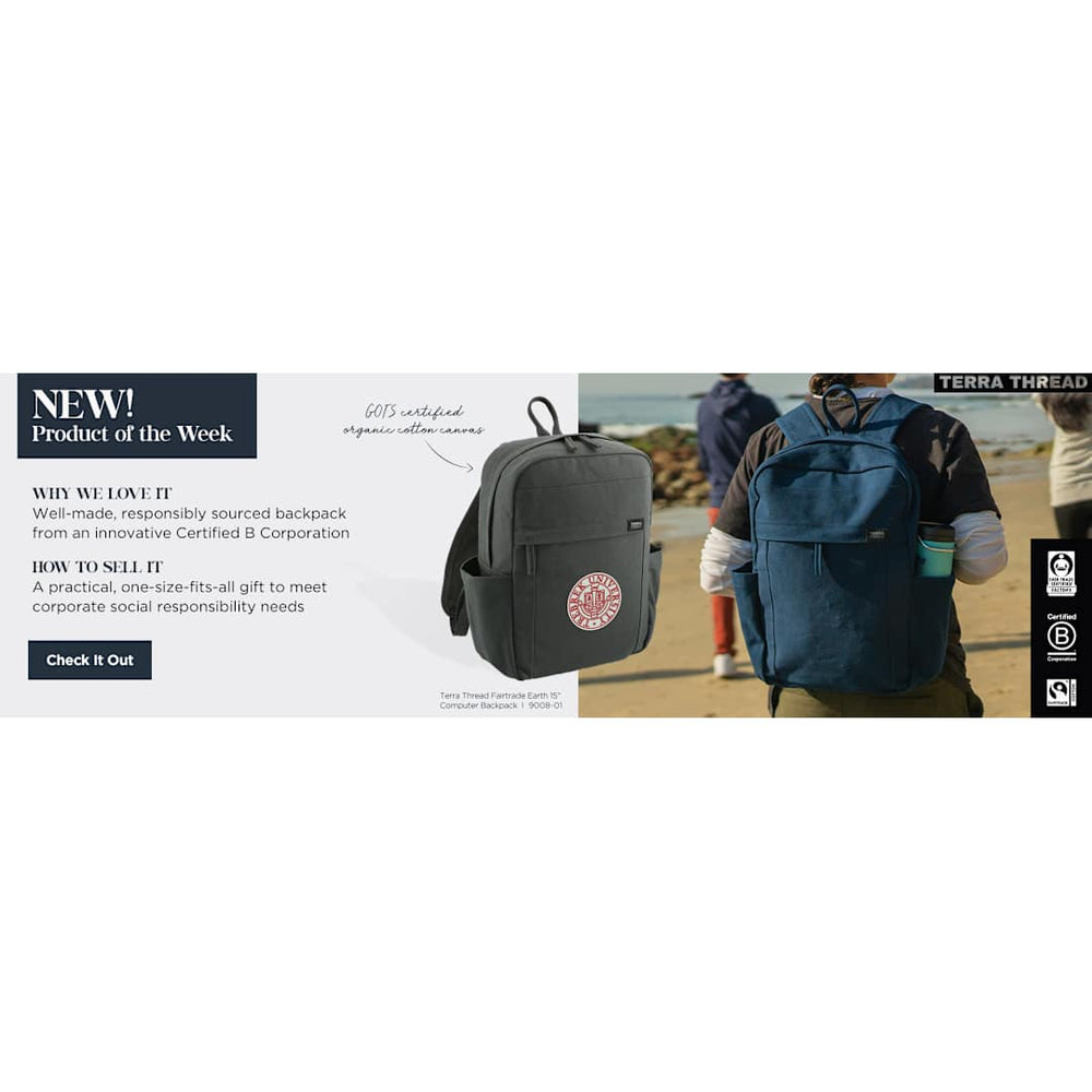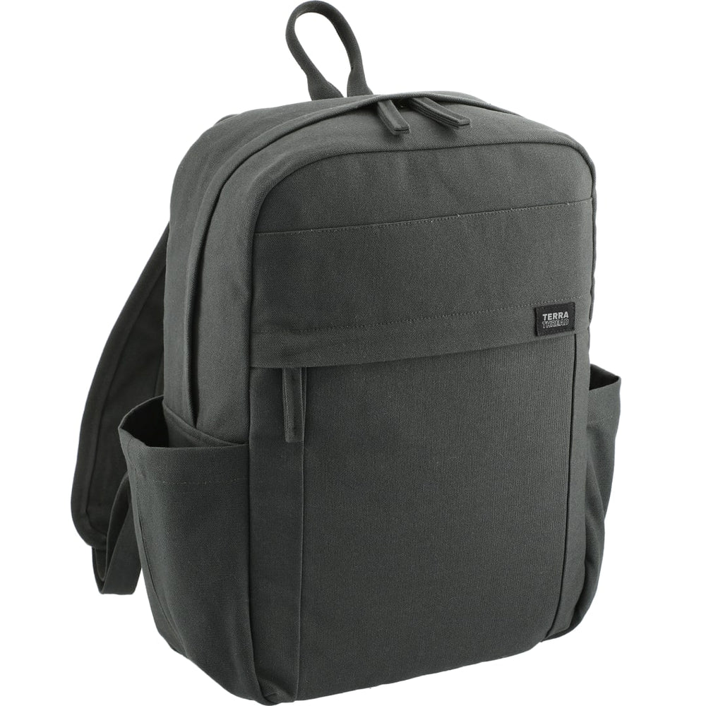 Looking for a sustainably and ethically made backpack for college, work, travel, hiking or other outdoor activities? The spacious and durable Terra Thread Fairtrade Earth 15" Computer Backpack is the workhorse of our line, built for everyday carry with heavy-duty 14oz. certified organic cotton canvas that is made in a Fair Trade Certified™ Factory. The generous main compartment is divided with a no-fuss sleeve for your laptop and one small interior pocket to keep things organized. Two water bottle sleeves and the large zippered exterior pocket keep hydration and frequently needed items close at hand. Your purchase also supports Feeding America's campaign to end hunger by helping donate meals to kids and families in need.