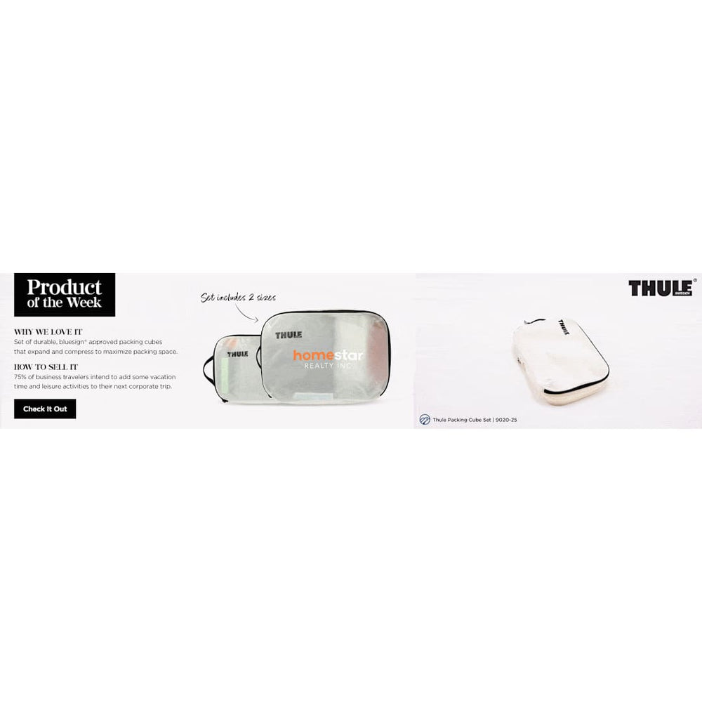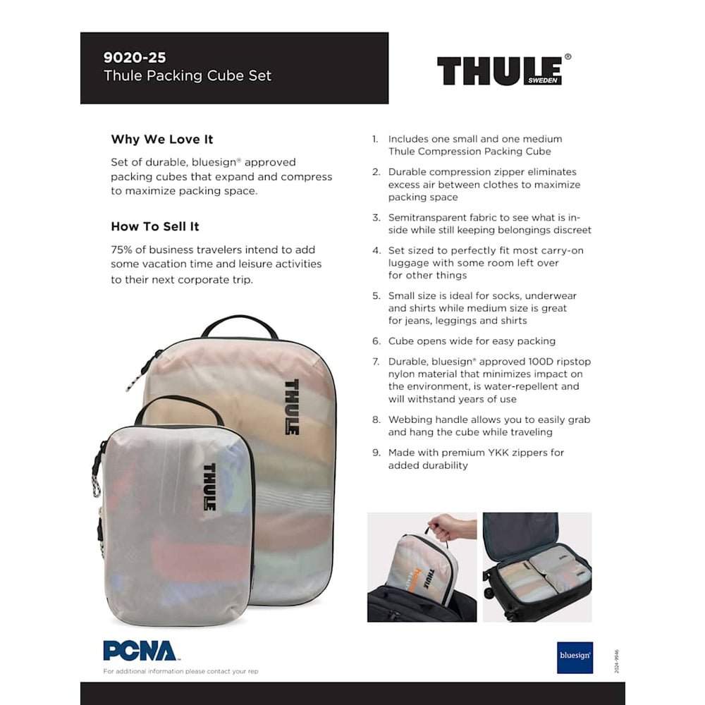 Pack smarter and stay organized with semitransparent packing cubes that expand and compress to maximize packing space. Compressed dimensions are 14" H x 10" W x 1.25" D. The small cube's dimensions are 10" H x 7" W x 4" D when expanded and 10" H x 7" W x 1.25" D when compressed. Decoration is on the large cube only.
