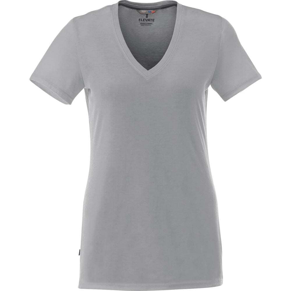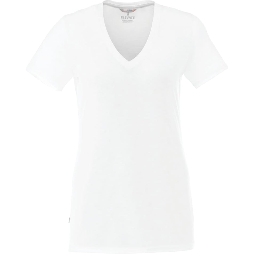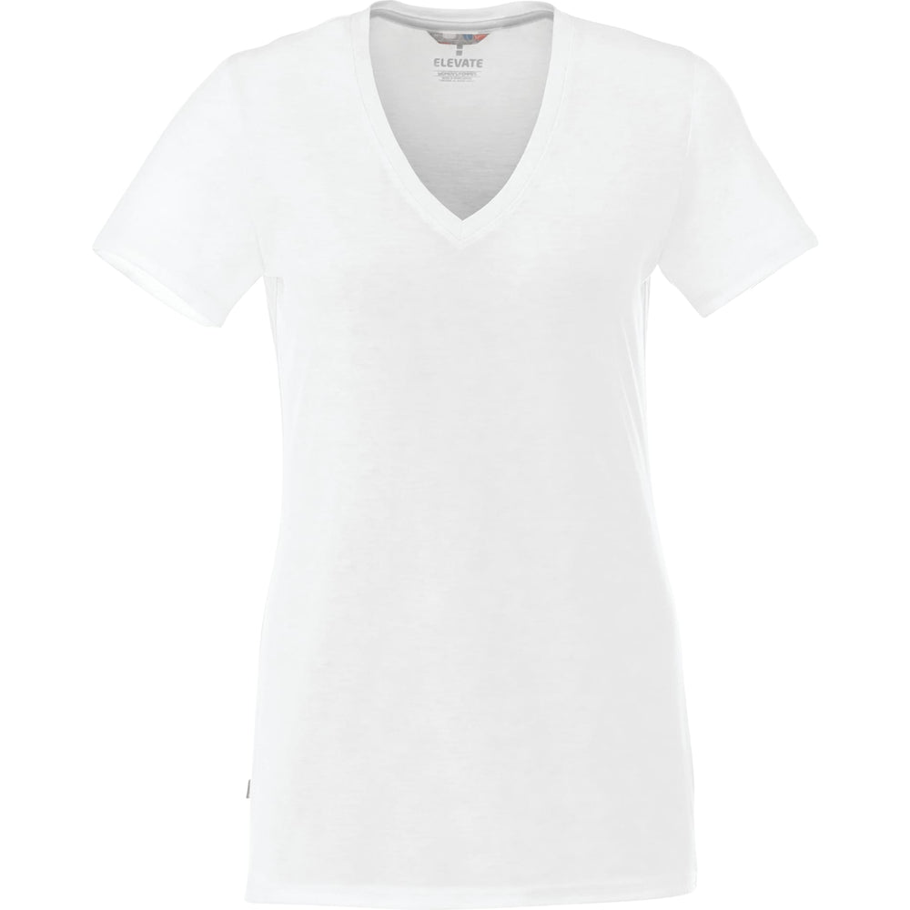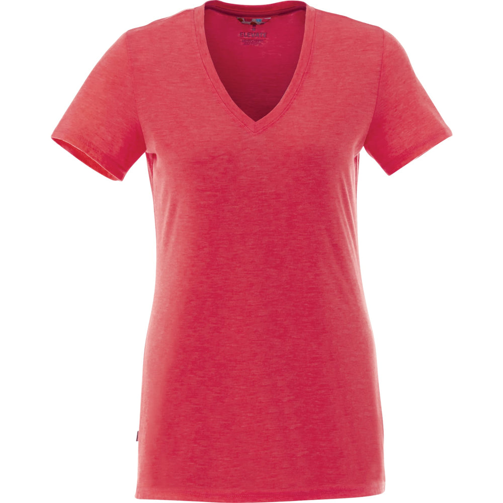 The Sarek V-Neck Short Sleeve Tee is a new twist on a Trimark best-seller. Available in nine vibrant colors, the Sarek V-Neck will represent your brand in style. It features a V-neck, self-fabric collar and chainstitch detail. Available in womens only, this style has shaped seams and a tapered waist for a flattering fit.
