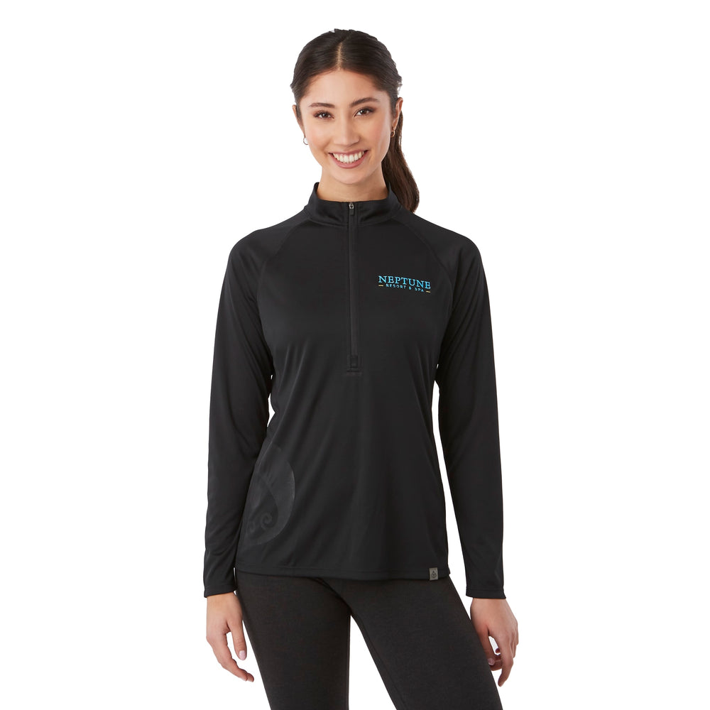 Looking for a layer that’s comfy, stylish and sustainable? The women’s Evans Eco Knit Half Zip is made from fully recycled materials – including the zipper! With high-performance doubleknit fabric made from 100% recycled polyester certified by the Global Recycled Standard (GRS) and made in a bluesign®-approved facility, this versatile half zip is a perfect athleisure piece for the outdoors, the office or anywhere in between! On top of being eco-friendly, the fabric is breathable, moisture-wicking, snag-resistant and offers UV protection! Raglan sleeve and side panels add extra comfort and mobility, plus it earns extra style points with coverstitching detail. A droptail hem, shaped seams and a tapered waist on the women’s styling make for the ultimate fit. As a bonus, it comes in a fully biodegradable polybag! Made from the same great fabric as our Evans Eco Short Sleeve Polo. One percent of all Eco sales are donated to environmental profits through a partnership with 1% For The Planet.
