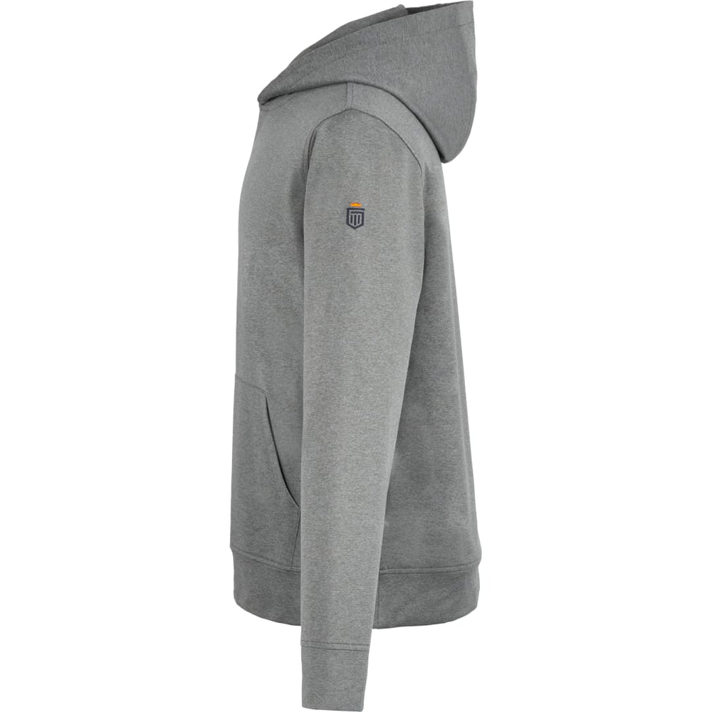 This is the ultimate performance sweatshirt. Designed for low to high impact activities. Great for lifting, light running, walking, cross training, layering, warm-ups, and cool downs. Blending an ultra-soft double brush hand feel + durability, this fabric is bluesign®-approved and certified by the Global Recycled Standard (GRS). Features include moisture wicking, UPF 40 sun protection, stretch for a maximum range of motion, pouch pocket and embroidered logo.