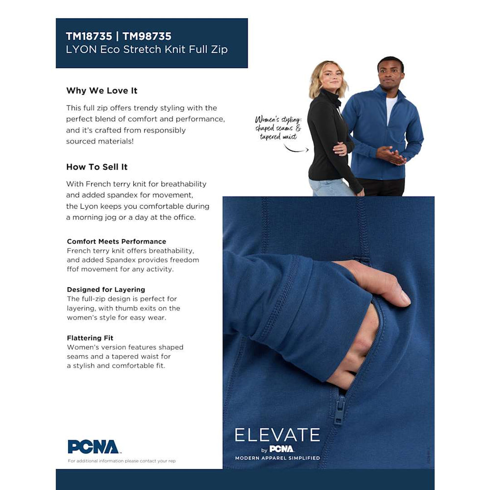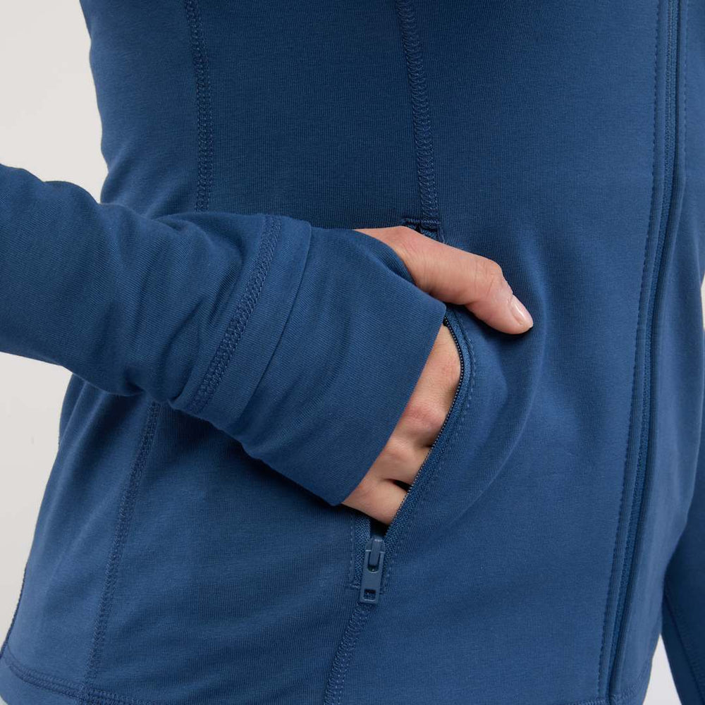 The Lyon Stretch Knit Full Zip is the perfect blend of functionality, comfort and style. The breathability of French terry knit combined with the added stretch from Spandex make it the perfect fit for active lifestyles, allowing for more freedom of movement during exercises and activities, but also makes it super-comfy for everyday use. The women’s style features thumb exits for easy layering, and shaped seams and a tapered waist for a more flattering and comfortable fit. A blend of Better Cotton Initiative (BCI) cotton and recycled polyester ensures a reduced environmental footprint, supporting both ethical cotton farming and recycling initiatives, and by choosing the Lyon you're making a positive impact on the environment, as one percent of sales are donated to environmental nonprofits through a partnership with 1% For The Planet.