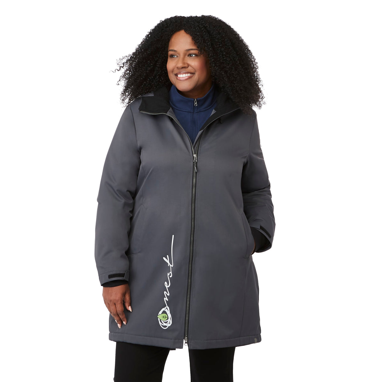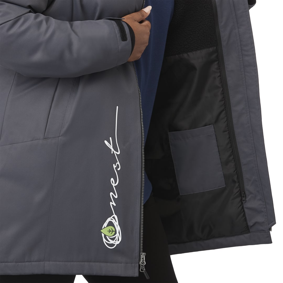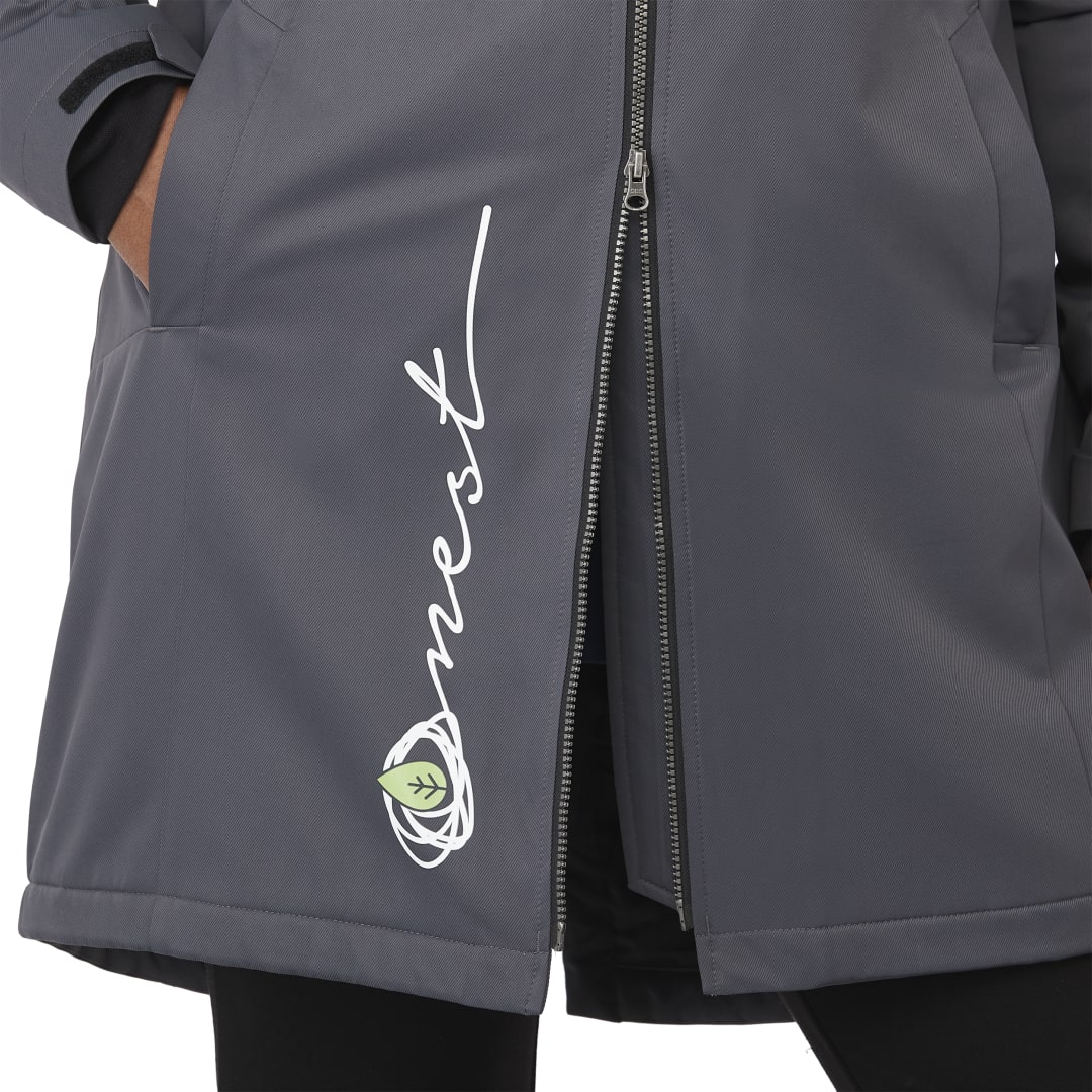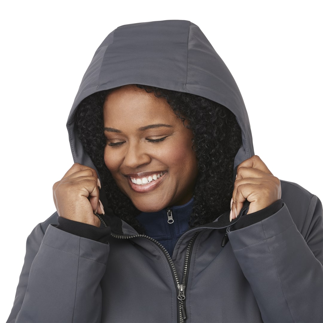 Meet the stylish, sustainable women’s Hardy Eco Insulated Jacket. Its breathable fabric, cozy sherpa lining and insulation are all made from recycled polyester, and its zipper and pinch label are also made from recycled content certified by the Global Recycled Standard (GRS). It also has a PFC-free water-resistant coating which means no perfluorinated chemicals were used to treat the garment. It provides lightweight weather protection, making it a comfy, eco-friendly piece you can feel good about wearing. The Hardy features comfy rib knit storm cuffs, concealed hood cordlocks, plus adjustable cuff tabs and a dropped back hem to help keep cold air out. The women’s styling features a longer length, a fish tail hem and a two-way zipper. With style that looks great anywhere, this versatile jacket will become your new favorite for chilly or rainy days. And through a partnership with 1% For The Planet, one percent of sales are donated to environmental nonprofits.