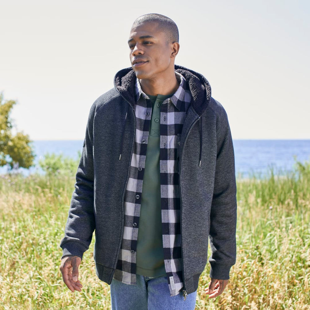 The men’s Copperbay Roots73 Full Zip Hoody combines classic style with unbelievable comfort you've come to expect from the Roots73 brand. This hoody has an ultra-soft sherpa fleece lining in the body and hood, plus jersey-lined sleeves to keep you extra cozy. Its drawstring hood and rib-knit cuffs and hems give you a closer fit. This full zip men's hoody even has an interior media pocket for your phone. Perfect for casual Fridays or running errands on the weekends. Best of all, the Copperbay’s fabric has been certified by bluesign®, which traces the complex journey through the supply chain to ensure that textiles are being manufactured with the lowest possible environmental burden.
