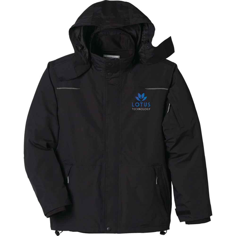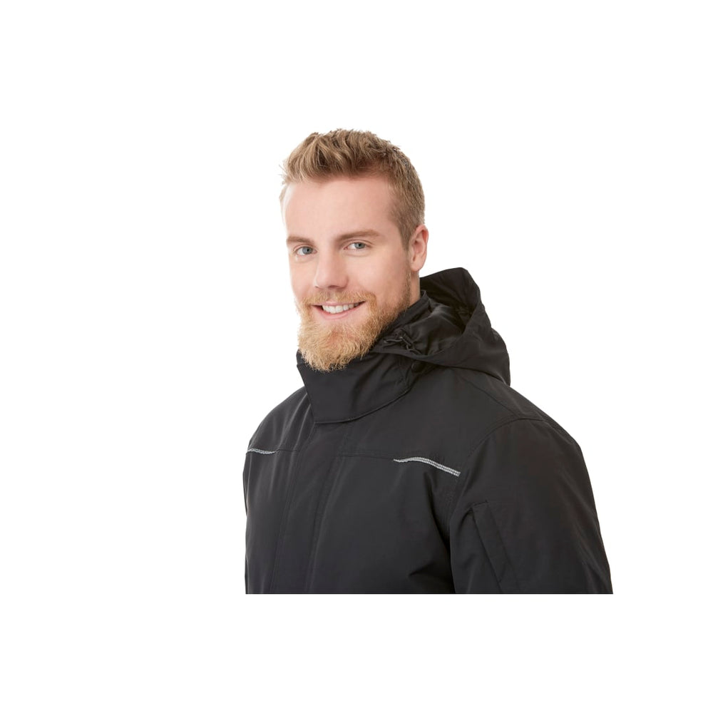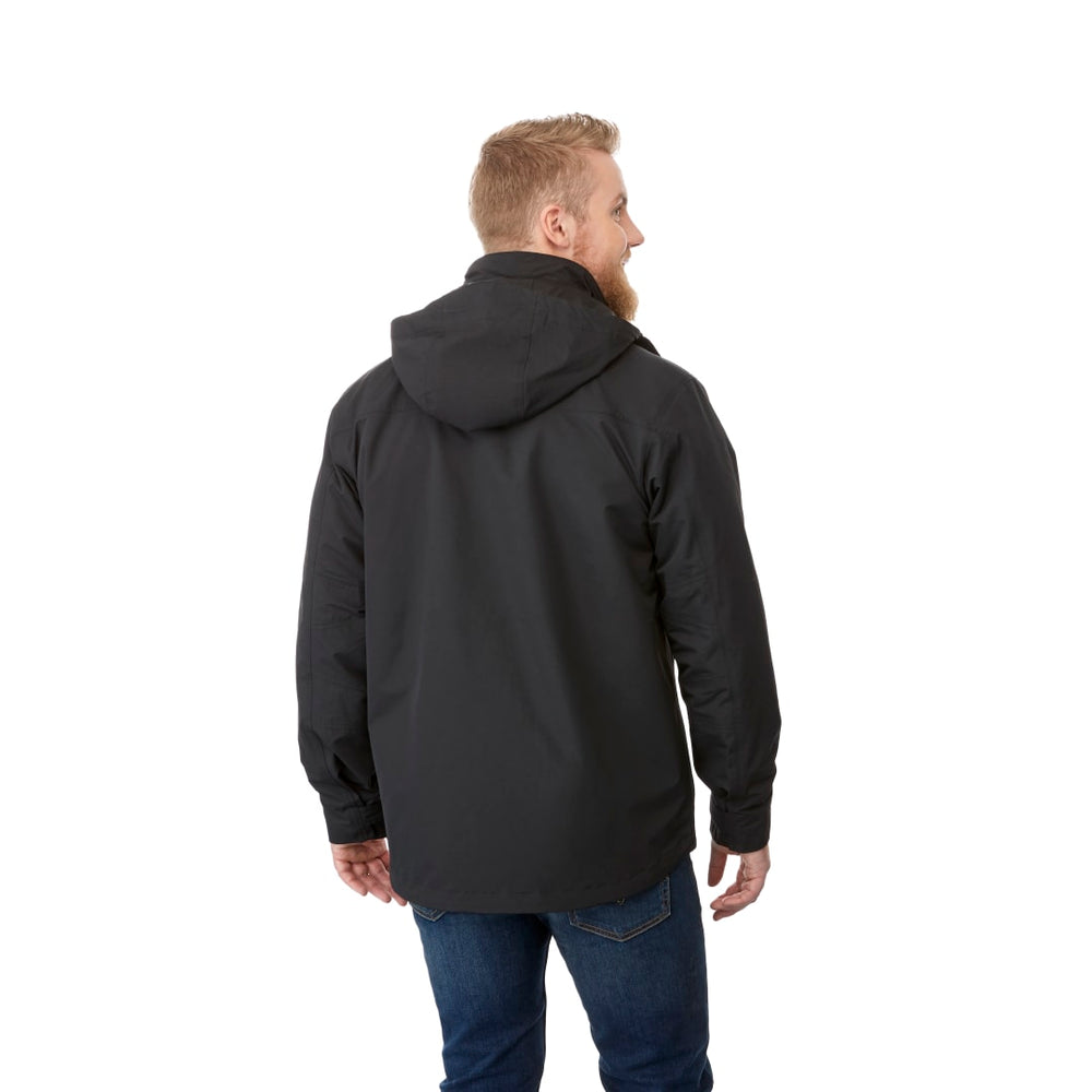 Seam sealed multi-functional 3-in-1 jacket with breathable, water repellant finish features detachable snap-off hood with drawcord and interior cord locks. Fine detailing includes diminishing two-tone reflective piping and triple needle top stitching. Sleeves engineered with adjustable self fabric cuff tabs with velcro closure and articulated elbows. With interior system snap tabs for liner add in. Accompanying liner with coverstitch detail features exposed plastic zipper with oxidise dark slider and puller. Lower patch pockets plus interior pocket with velcro closure. System loops at neck and lower sleeves.