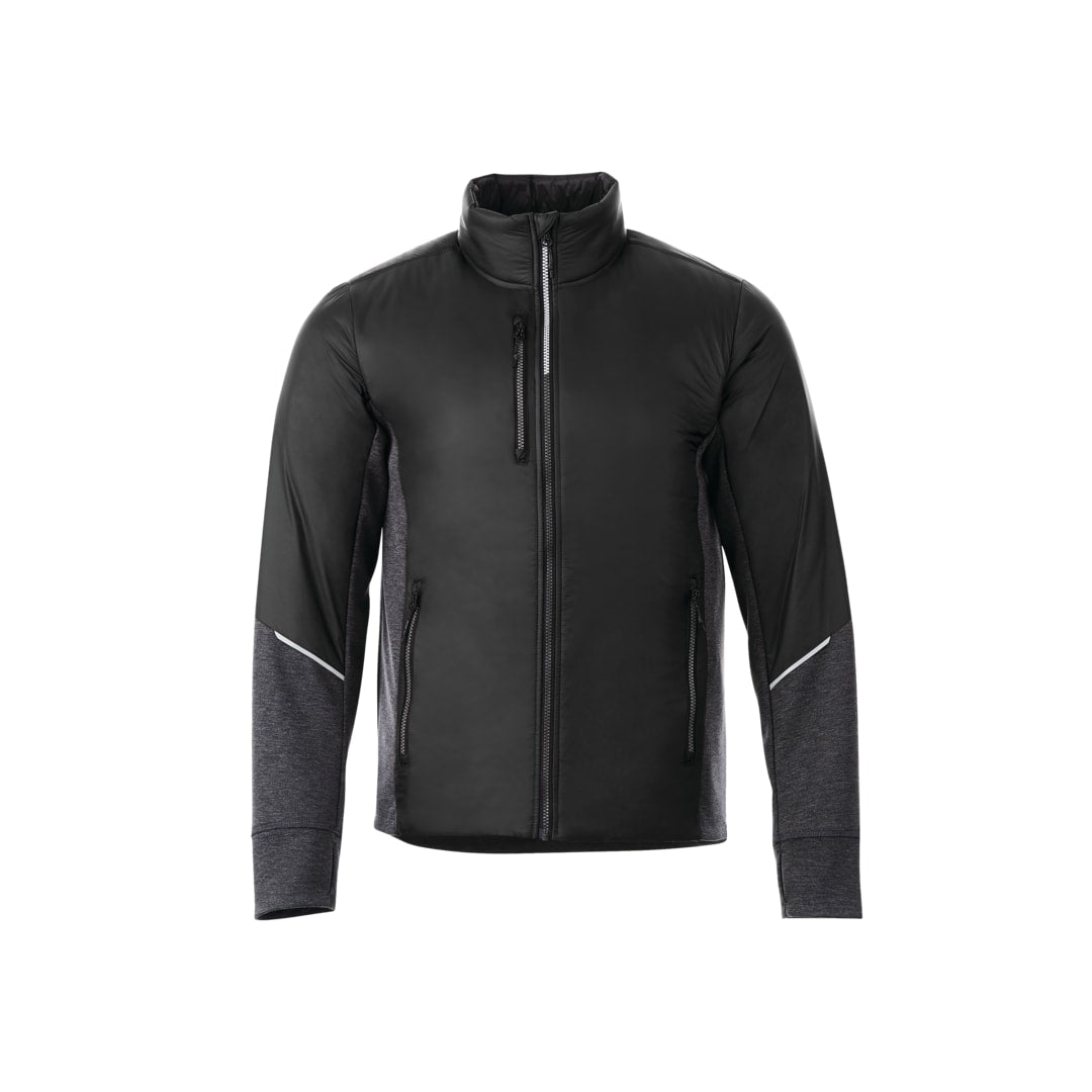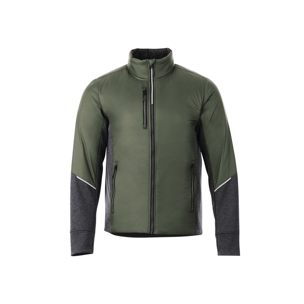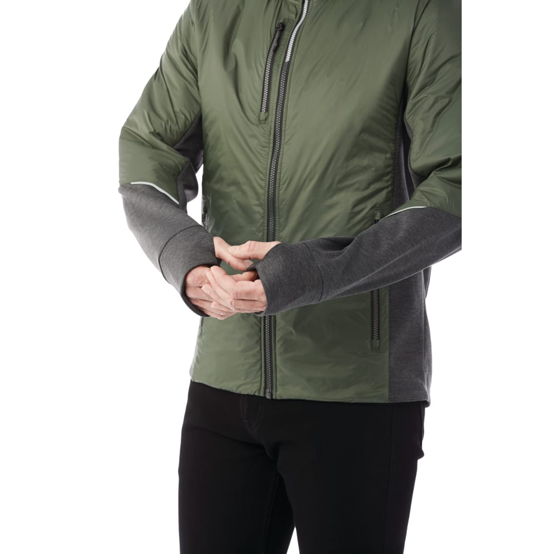The Mens Fernie Hybrid Insulated Jacket offers superior lightweight warmth for an active lifestyle. A water repellent finish keeps you dry, while reflective details on the sleeve and back add visibility. For style and comfort, this jacket features a dropped back hem, contoured cuffs with thumb exits, and articulated elbows. An interior media pocket and cord guide keep devices accessible.