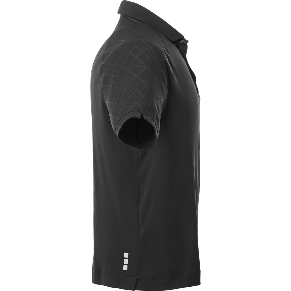 The Men's Hakone Short Sleeve Polo is on-trend, but still versatile enough for any industry. With a subtle graphic pattern on the sleeves, this style provides a unique look, with a moisture wicking and breathable finish. The Hakone is also snag-resistant and provides UV protection (UPF 40+).