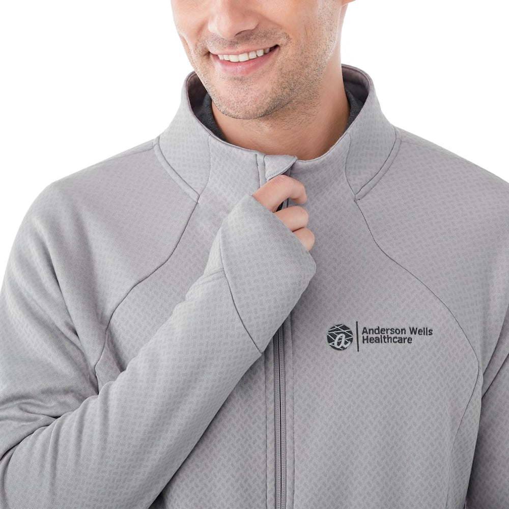 The stylish Men's Kirkwood Knit Jacket has a distinctive textured jersey knit that stands out from the crowd. For mobility and comfort, it has articulated elbows, ergonomic sleeves and contoured cuffs with thumb exits.