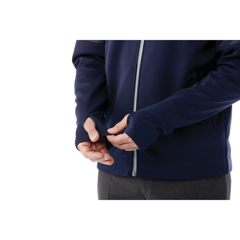 The Men's Senger Knit Jacket combines comfort and technical performance for maximum versatility. This sophisticated, innovative jacket features two color contrast zipper details, sleeve cuffs with thumb exits for comfort and an interior media pocket to keep devices handy. A subtle graphic detail on the shoulder creates a distinctive look.