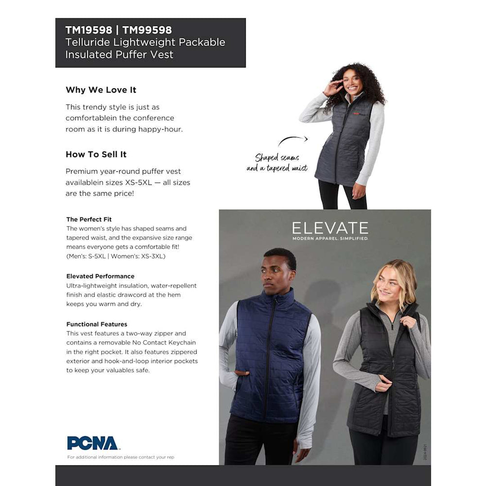 The men’s Telluride Packable Insulated Vest keeps you warm and comfy all day. On top of its stylish retail design, this vest contains a removable No Contact Keychain in the right pocket, which lets you turn door handles, press elevator buttons and use ATM keypads without touching them. Ultra-lightweight insulation and water-repellent finish keep you warm and dry without weighing you down. It even packs away into a built-in stuff sack for easy stowing. Lots of functional features, like zippered pockets to keep your valuables safe and interior pocket with hook-and-loop closure. Plus, an elastic drawcord at the hem to keep out the cold. Made from the same great fabric and insulation as our Telluride Packable Insulated Jacket, this is your go-to for – well, anywhere.
