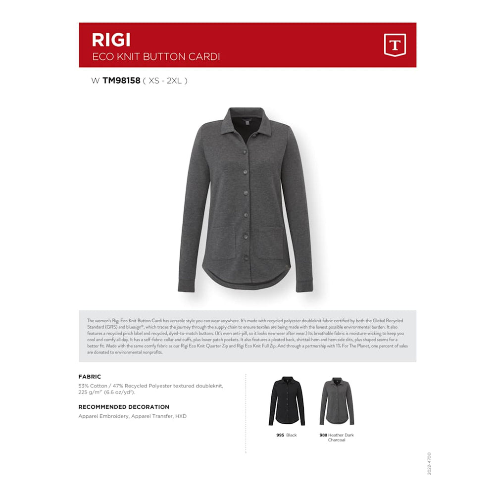 The women’s Rigi Eco Knit Button Cardi has versatile style you can wear anywhere. It’s made with recycled polyester doubleknit fabric certified by the Global Recycled Standard (GRS) and made in a bluesign®-approved facility. It also features a recycled pinch label and recycled, dyed-to-match buttons. (It’s even anti-pill, so it looks new wear after wear.) Its breathable fabric is moisture-wicking to keep you cool and comfy all day. It has a self-fabric collar and cuffs, plus lower patch pockets. It also features a pleated back, shirttail hem and hem side slits, plus shaped seams for a better fit. Made with the same comfy fabric as our Rigi Eco Knit Quarter Zip and Rigi Eco Knit Full Zip. And through a partnership with 1% For The Planet, one percent of sales of all Eco products are donated to environmental nonprofits.
