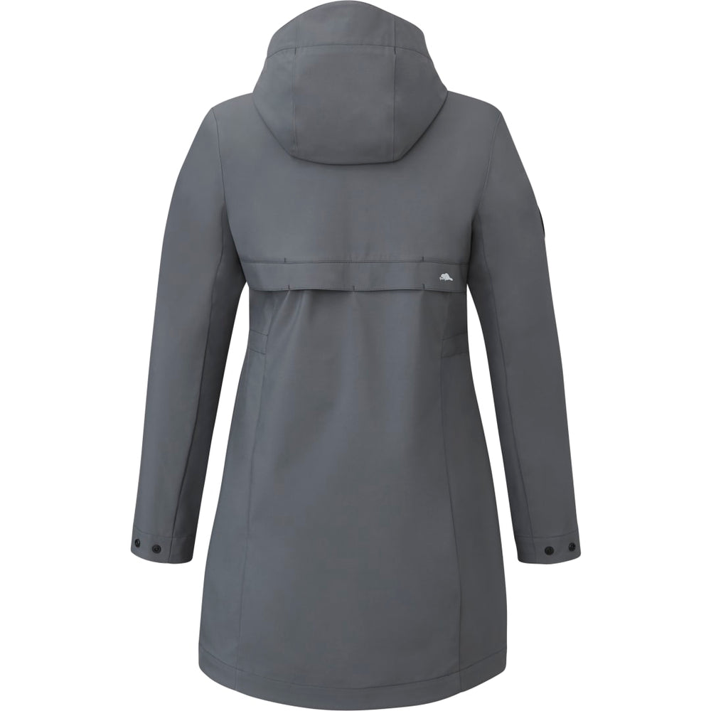 Rain is no match for the women’s Roots73™ Napanee Eco Softshell Jacket. Made with REPREVE® recycled polyester certified by the Global Recycled Standard (GRS) and featuring a breathable, waterproof membrane, this eco-friendly, critically seam-sealed softshell is a must-have for rainy weather. And with a PFC-free water-resistant coating, which means no perfluorinated chemicals were used to treat the garment, it delivers extra weather protection to keep you dry all day. The built-in back vent adds extra breathability. This versatile longer length softshell jacket also features a two-way zipper, zippered pockets, plus a detachable snap-off contour hood with elastic drawcord exterior cordlocks –all made with recycled materials. Women’s features adjustable snap cuffs and interior adjustable waist drawstring for a better fit. As a bonus, it comes in a fully biodegradable polybag! One percent of all Eco sales are donated to environmental nonprofits through a partnership with 1% For The Planet.