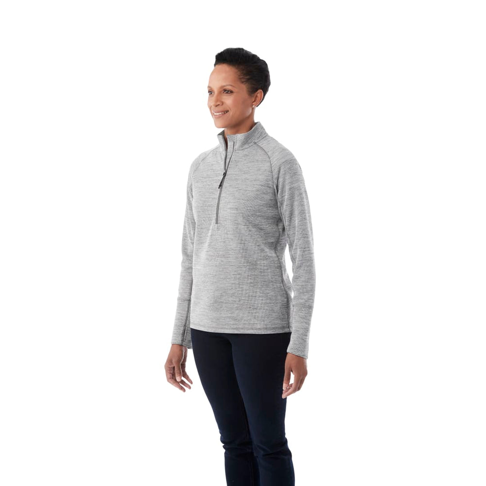 The Women's Crane Knit Half Zip delivers comfort, versatility and technical performance. The Crane features on-trend heathered colors and a dropped back hem for retail style. The moisture-wicking fabric provides all-day comfort, and added features like thumb exits and shaped seams for a flattering fit make this a style you'll want to wear everyday.