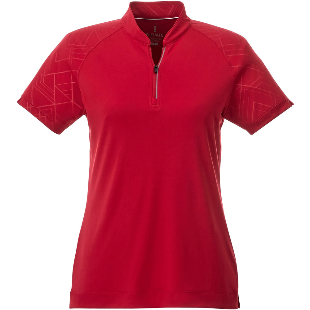 The Women's Hakone Short Sleeve Polo is on-trend, but still versatile enough for any industry. With a subtle graphic pattern on the sleeves, this style provides a unique look, with a moisture wicking and breathable finish. The Hakone is also snag-resistant and provides UV protection (UPF 40+).The women's version has a mandarin collar with a zippered placket, in addition to shaped seams and tapered waist for a flattering fit.