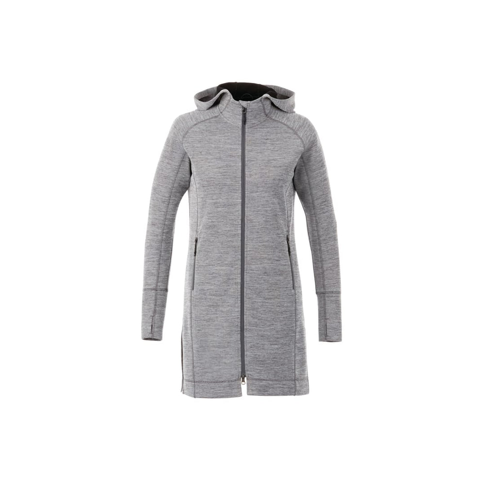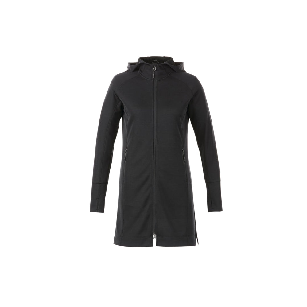 The Women's Odell Knit Zip Hoody features an on-trend tunic length design and an articulated hood for distinctive, casual comfort. Shaped seams and a tapered waist give the style a flattering fit. Moisture-wicking breathable fabric and thumb exits provide maximum comfort and mobility. An interior media pocket keeps devices handy.