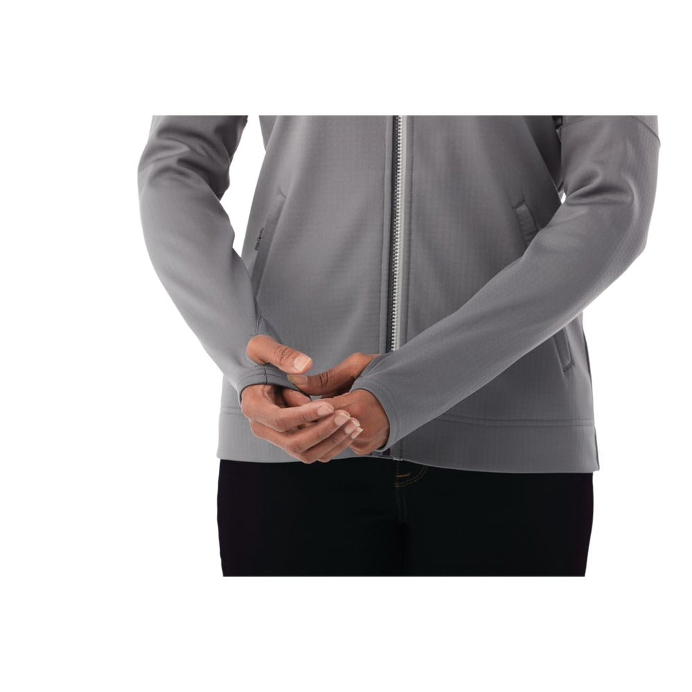 The Women's Senger Knit Jacket combines comfort and technical performance for maximum versatility. A subtle graphic detail on the shoulder creates a distinctive look, while shaped seams and a tapered waist give a flattering fit. This sophisticated, innovative jacket features two color contrast zipper details, sleeve cuffs with thumb exits for comfort and an interior media pocket to keep devices handy.