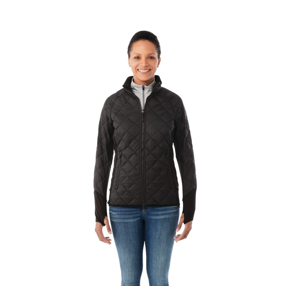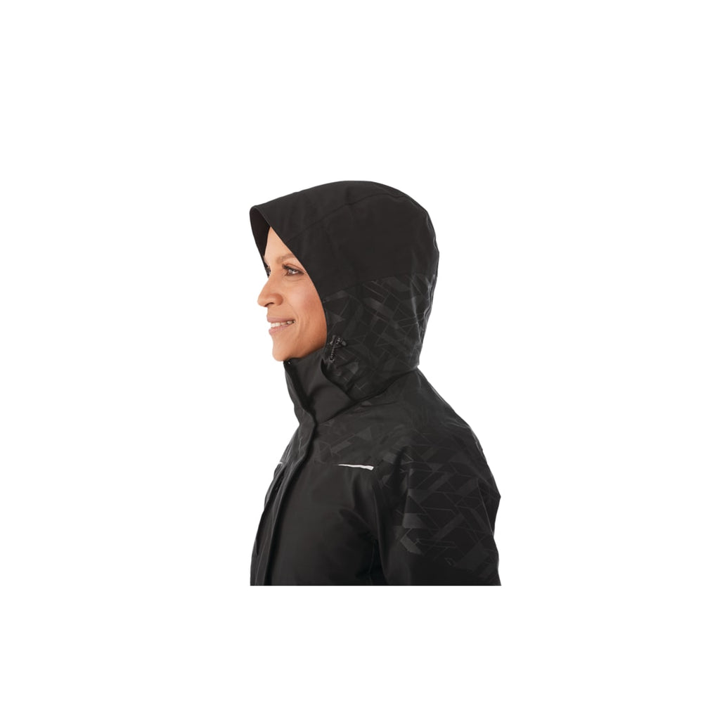The Womens Yamaska 3-in-1 Jacket will keep you ready for any weather with a fully seam-sealed outer softshell jacket thats waterproof and breathable along with the removable insulated hybrid jacket liner that can be worn on its own or layered with the outer shell for extra warmth and protection. This high-performance jacket keeps comfort in mind, with extra collar padding for coziness, articulated elbows and ergonomic sleeves to help with movement and thumb exits to keep your hands free. Added features like easy grip zipper pulls, a detachable hood, elastic drawcords at the hem, interior media pocket and hidden pockets at the sleeve and interior make this jacket highly functional. The outer jacket has an on-trend graphic pattern and reflective elements.