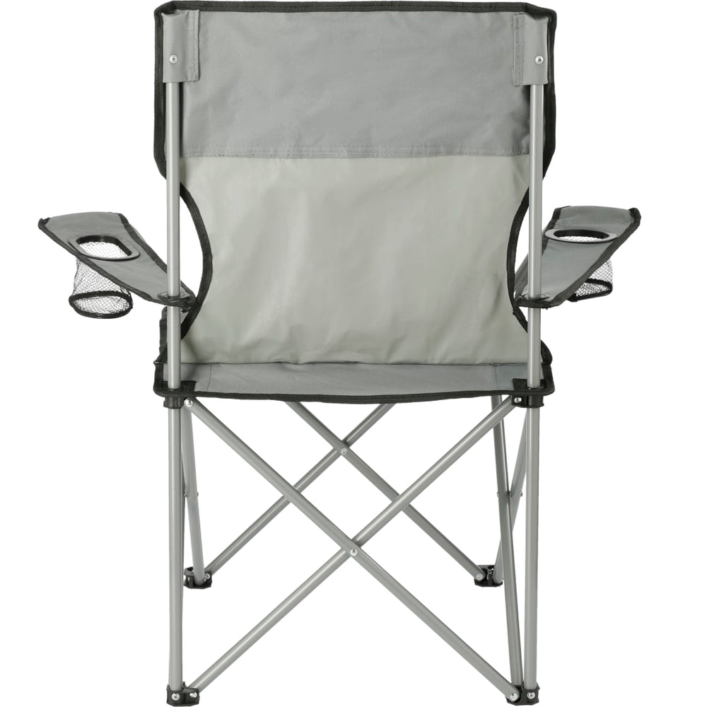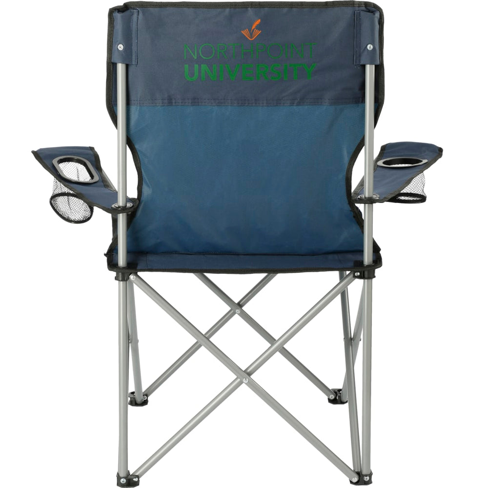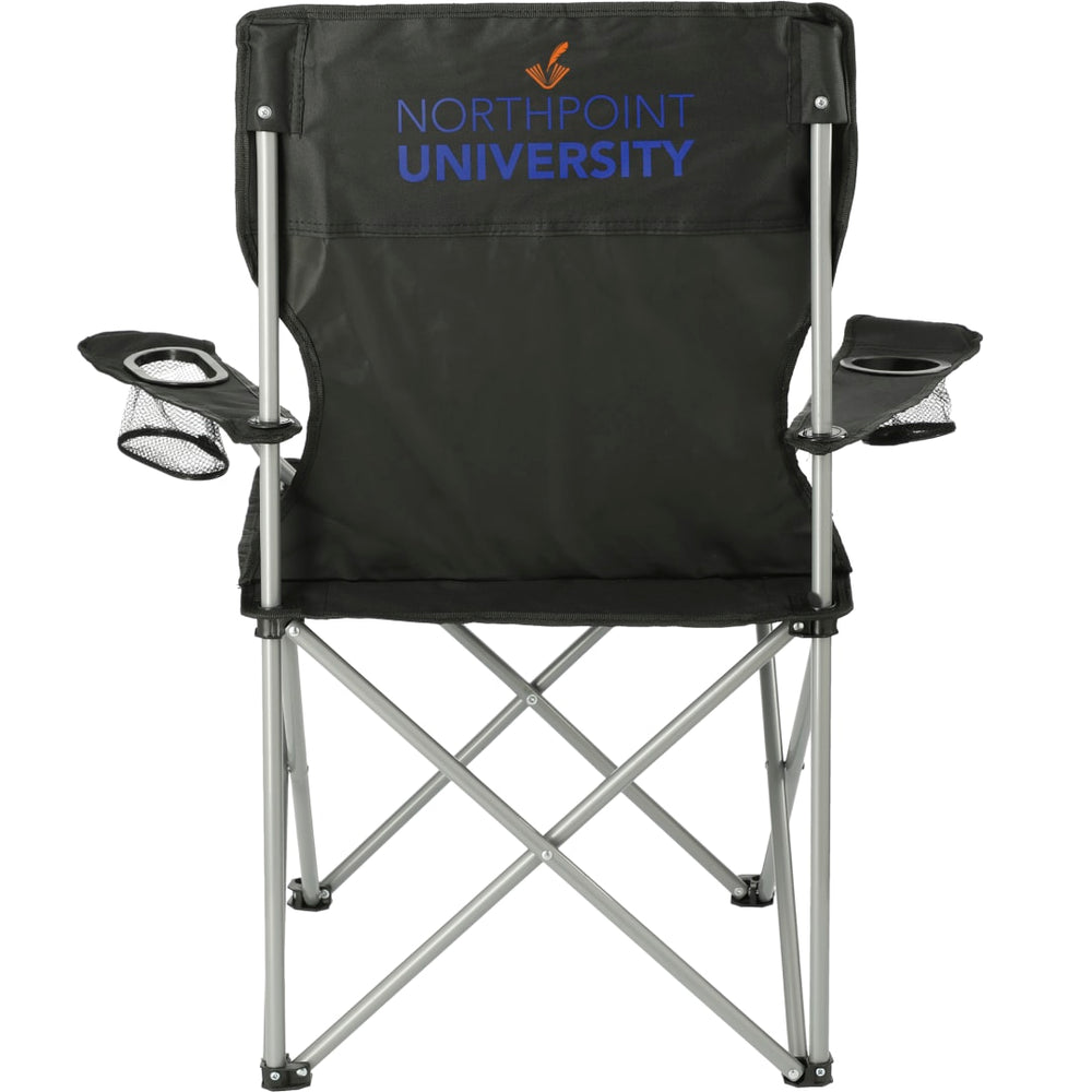 The Fanatic Event Folding Chair is a portable folding chair with an arm rest and built-in cup holders. Includes matching carry case with shoulder strap. This chair has a loading weight limit of 300 lbs. An imprint is available only on back of chair. Carry case not available for imprint.