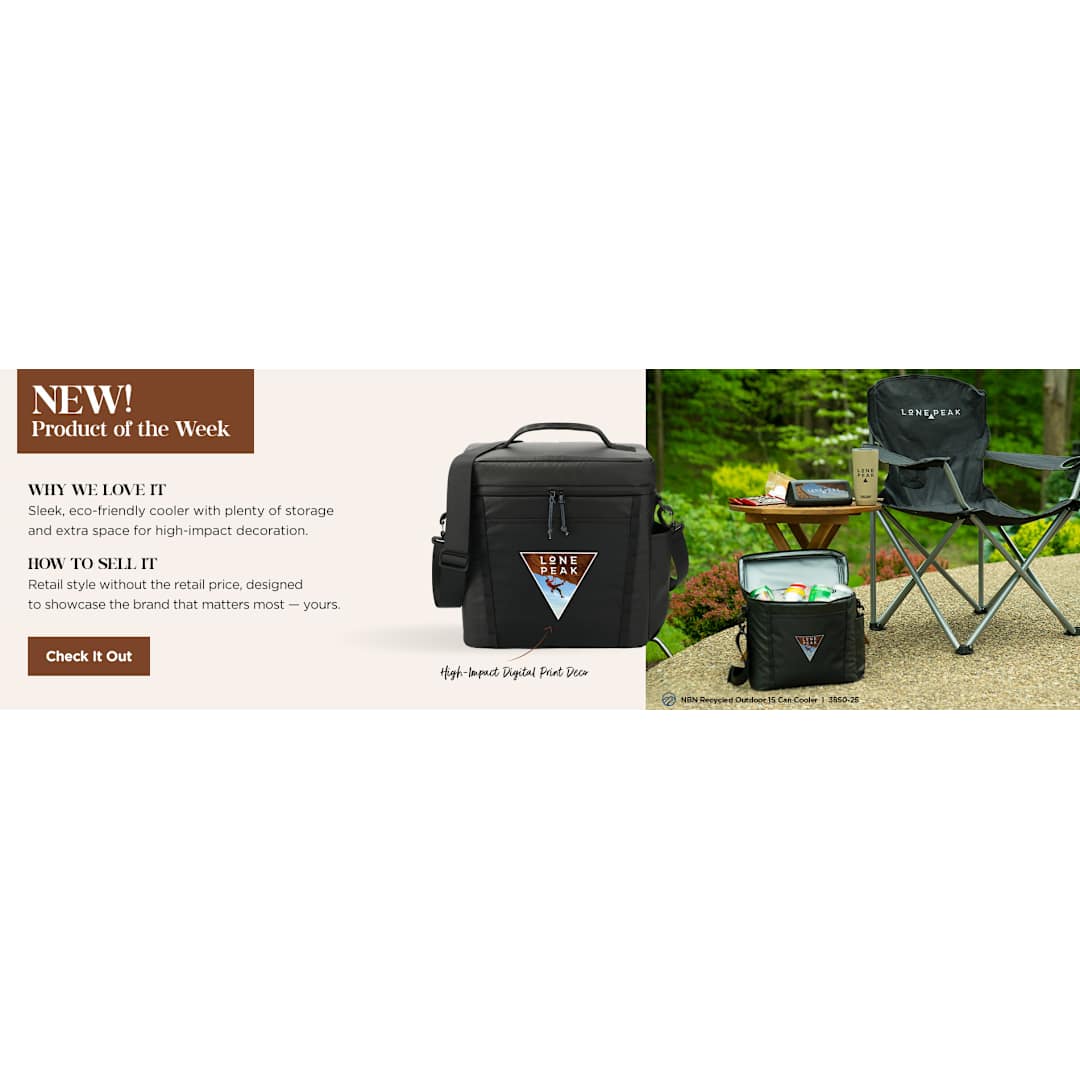 The NBN Recycled Outdoor 15 Can Cooler has a sleek design featuring and easy-access front pocket and one side pocket. The cooler is fully insulated, and it’s body material is made with recycled material. Through a partnership with 1% For The Planet, one percent of sales of all EcoSmart® products will be donated to nonprofits dedicated to protecting the planet.