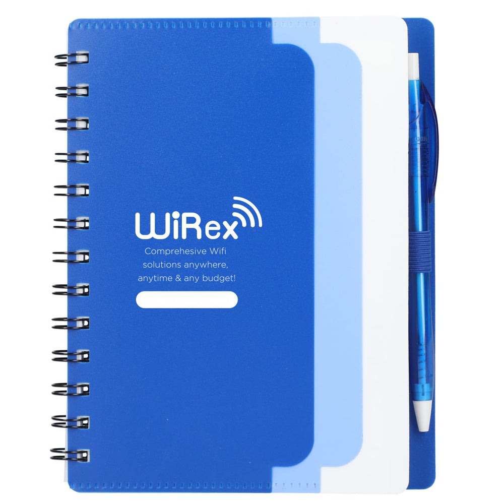 5" x 7" Recycled Dual Pocket Spiral Notebook w Pen