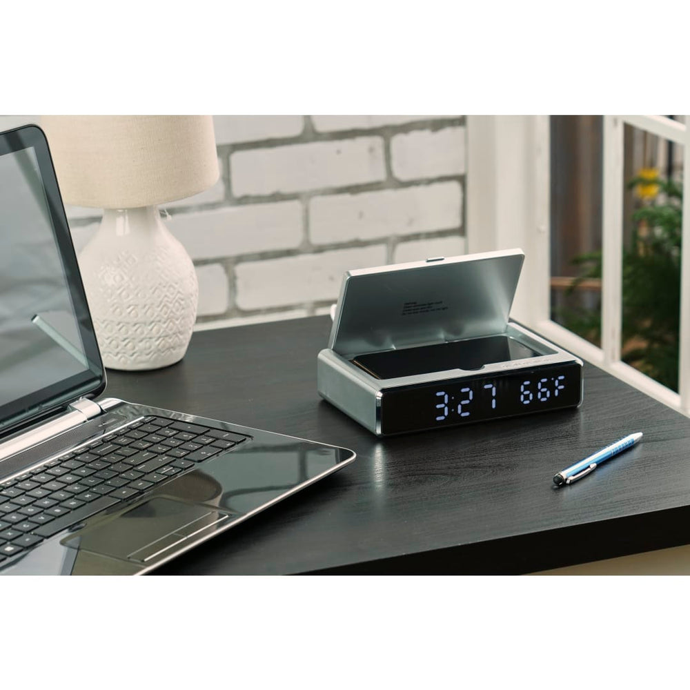 Horloge de bureau avec chargeur sans fil et désinfectant UV