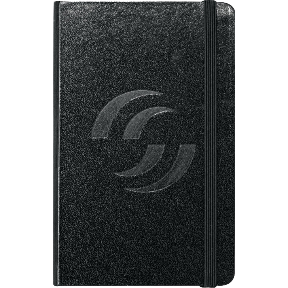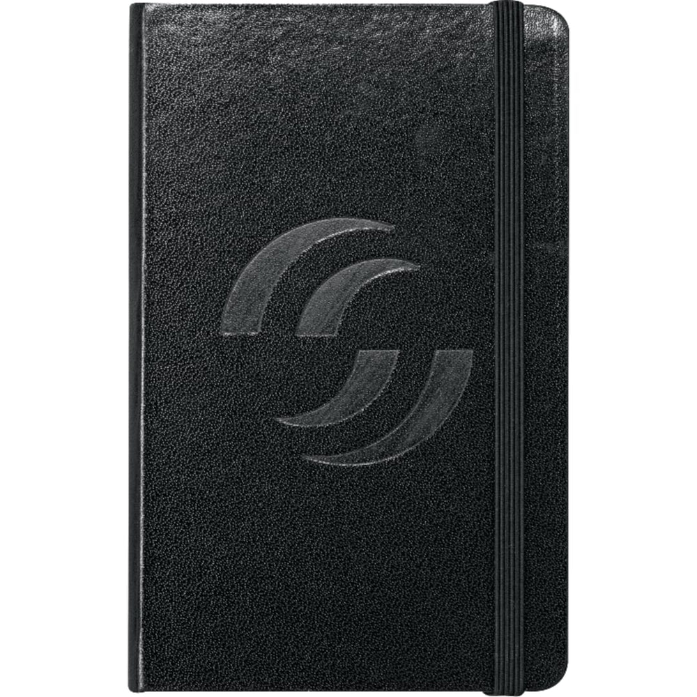 The 3.5" x 5" FSC Mix Ambassador Pocket Bound JournalBook® is a hardcover bound journal with built-in elastic closure. Use the expandable accordion pocket to hold small documents or paper. The Ambassador Pocket Bound JournalBook includes a ribbon page marker and 80 sheets of cream lined FSC Mix paper.