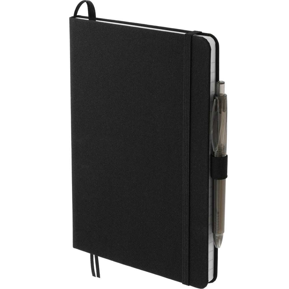 This set includes (2800-80) 5.5" x 8.5" Recycled Marine Bound JournalBook® Set and 6003-29 FUNCTION RPET Gel Pen. Features a uniquely crafted cover material, Repreve®, which is made with recycled ocean plastic and waste collected from coastlines of developing countries. Includes color-matching elastic closure, pen loop and ribbon page marker. 96 sheets of lined recycled paper. Through a partnership with 1% For The Planet, one percent of sales of all EcoSmart® products are donated to environmental nonprofits.