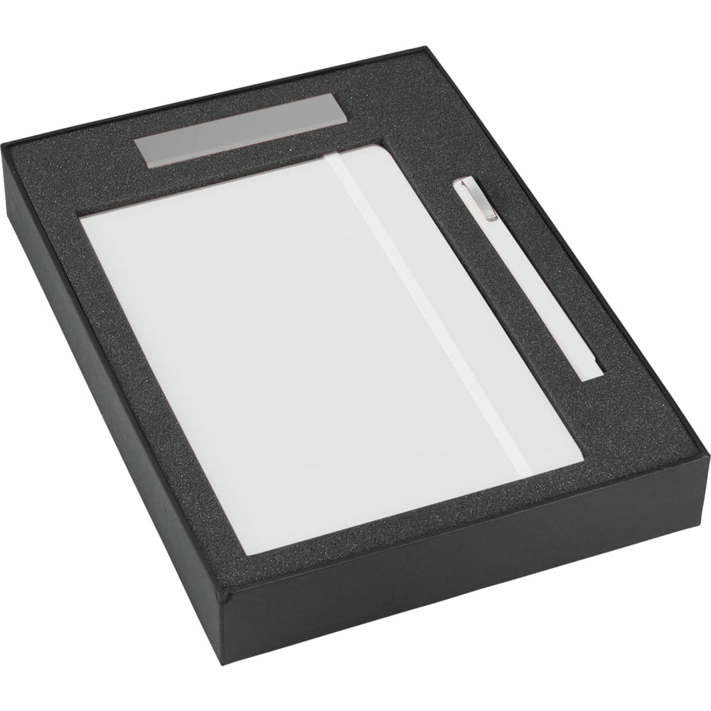 Optimize your message with this Ambassador Power Gift Set. Set includes (1921-09) Ambassador Bound JournalBook™, (6620-31) Ambassador Square Pen, (7120-15) Jolt 2,220 mAh Power Bank and the (9094-06) 2 Pc Bundle Gift Box. Pricing includes a one color / one location imprint on each item. Decoration on gift box is available for an additional charge. Available on SureShip!